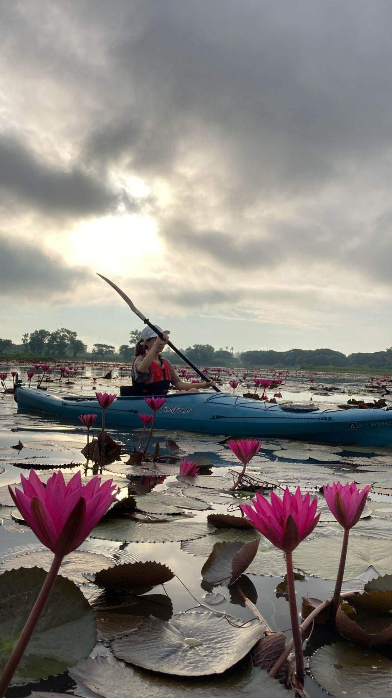 เมื่อวันที่ 30 พ.ย. 65 ผู้สื่อข่าวรายงานว่า นักท่องเที่ยวพากันพายเรือคายัคชมและถ่ายภาพบัวสายสีแดงที่เติบโตและขยายพันธุ์กลางกว๊านพะเยาบริเวณบ้านร่องไฮ หมู่ 1 ต.แม่ใส อ.เมือง พะเยา มีพื้นที่บัวสายบานสีบานเย็น หรือ เรียกว่า ทุ่งบัวแดง อย่างงดงามบนพื้นที่ 50 ไร่ ในผืนน้ำกว๊านพะเยาชึ่งปีนี้เป็นอีกปีที่บัวแดงจะออกมาต้อนรับฤดูหนาวทำให้มีนักท่องเที่ยว ทั้งในและต่างจังหวัดตลอดจนชาวต่างชาติ พายเรือคายัคมาชมความงามของทุ่งบัวแดงทุกเช้า