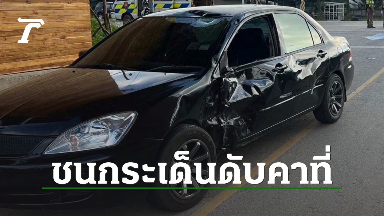ส่วนคู่กรณีเป็นหญิงวัยกลางคนอายุ ระหว่าง 40-50 ปี ขับรถเก๋ง มิตซูบิชิ แลนเซอร์ สีดำ ทะเบียน กจ 292 แพร่ สภาพประตูด้านหน้าฝั่งซ้าย พังยับจากการชนอย่างจัง จนทำให้ กระจกมองข้าง กระจกประตูกระเด็นเข้าไปในรถ หน้ากระจะมีร่องรอยยุบเพราะถูกกระแทก จอดอยู่ห่างไปประมาณ 3 เมตร