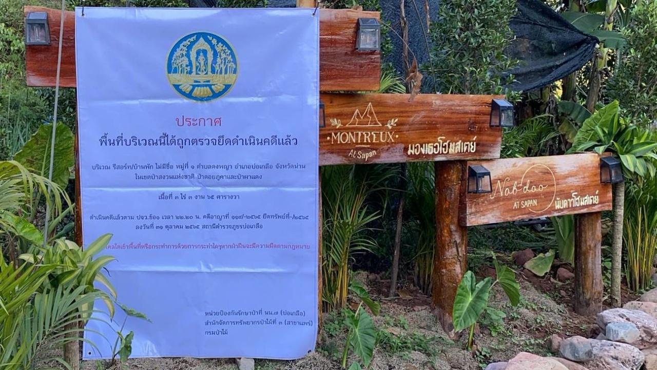 ทั้งนี้ รีสอร์ตดังกล่าว ได้กระทำการฝ่าฝืนประกาศ เป็นพื้นที่ถูกตรวจยึดดำเนินคดีอาญาและยึดทรัพย์ ตั้งแต่เมื่อวันที่ 31 ตุลาคม 2565 เนื่องจากได้ก่อสร้างบ้านพักบริการนักท่องเที่ยว จำนวน 12 หลัง รุกเขตป่าสงวนแห่งชาติป่าดอยภูคาและป่าผาแดง เนื้อที่กว่า 3 ไร่ จึงได้ประกาศห้ามบุคคลใดเข้าพื้นที่หรือกระทำการด้วยการกระทำใดๆ หากฝ่าฝืนจะมีความผิดตามกฎหมาย แต่ผู้ประกอบการยังคงเปิดบริการนักท่องเที่ยว และดำเนินการขายห้องพักในราคา ห้องละ 3,000-10,000 บาท ผ่านสื่อโซเชียล อีกทั้งยังมีการนำดาราสาวชื่อดังมาเป็นพรีเซ็นเตอร์เข้าพักที่รีสอร์ต และนำชื่อบุคคลมีชื่อเสียงในวงการต่างๆ มาแอบอ้างเป็นหุ้นส่วน เพื่อสร้างความน่าเชื่อถือ