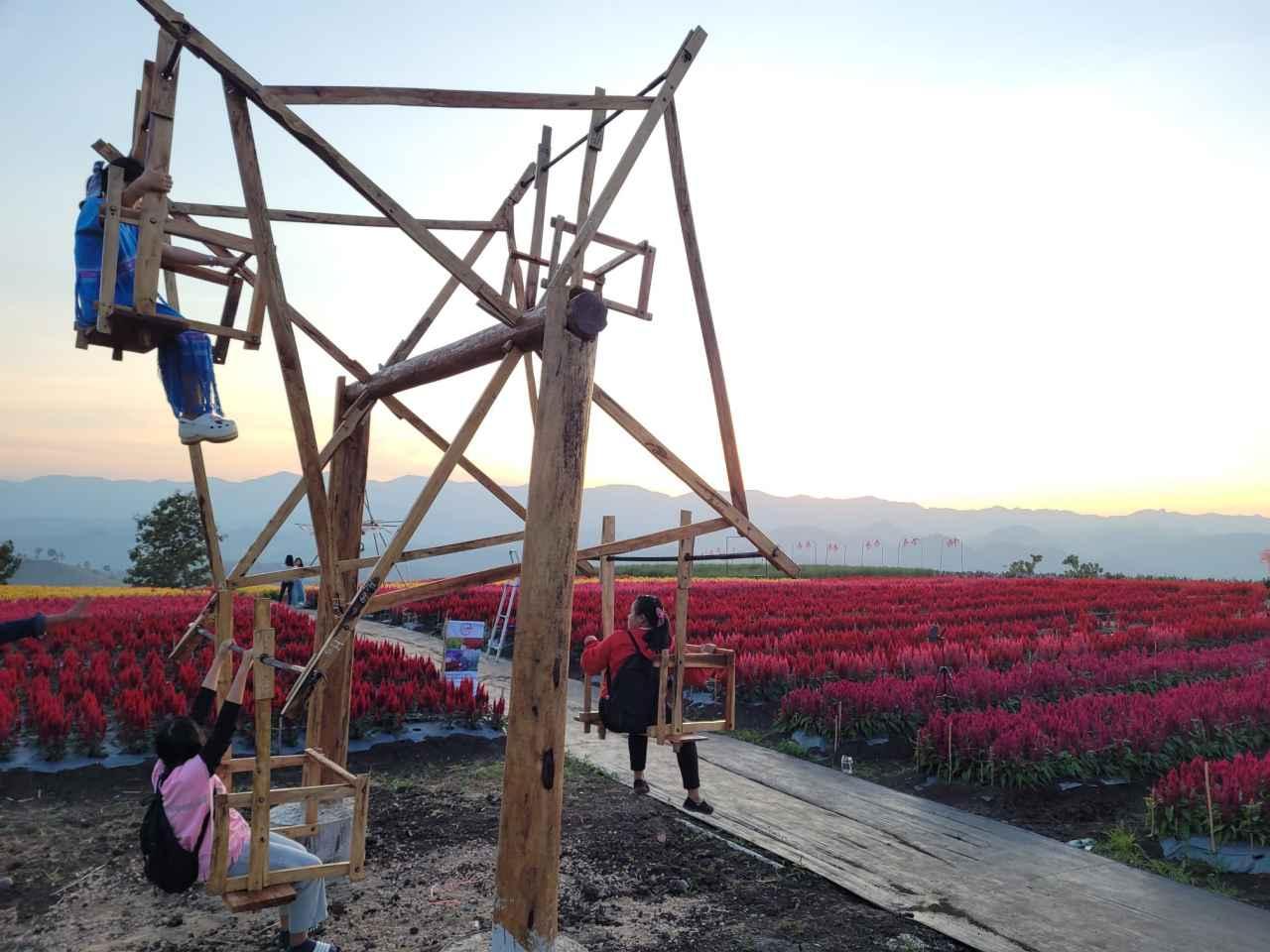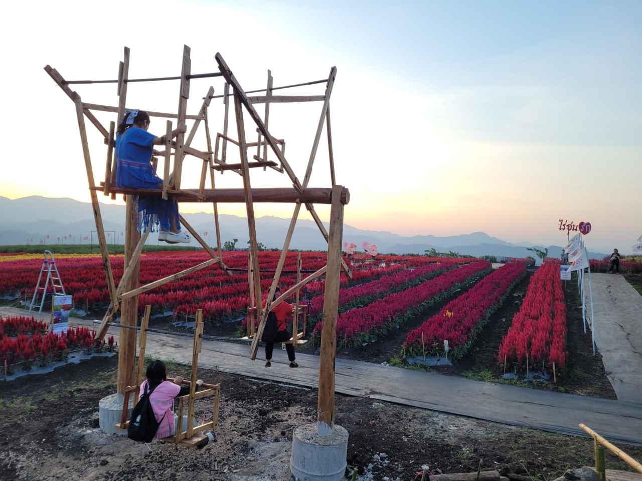 โดยเฉพาะจุดแลนด์มาร์กของไร่อุ่นรักและถือเป็นจุดไฮไลต์ คือ ชิงช้าชาวดอย ซึ่งได้รับความสนใจจากนักท่องเที่ยวต่างขึ้นไปนั่งชิงช้าชาวดอย ถ่ายภาพพระอาทิตย์ลับเชิงเขาชายแดนไทย-เมียนมา ตะวันตกสุดของสยามซึ่งเป็นชมพระอาทิตย์ลับเขาที่สุดท้ายของประเทศไทย จนเป็นภาพแห่งความประทับใจของกลุ่มนักท่องเที่ยวที่เข้ามาสัมผัสท้าลมหนาวที่ไร่อุ่นรักในปีนี้