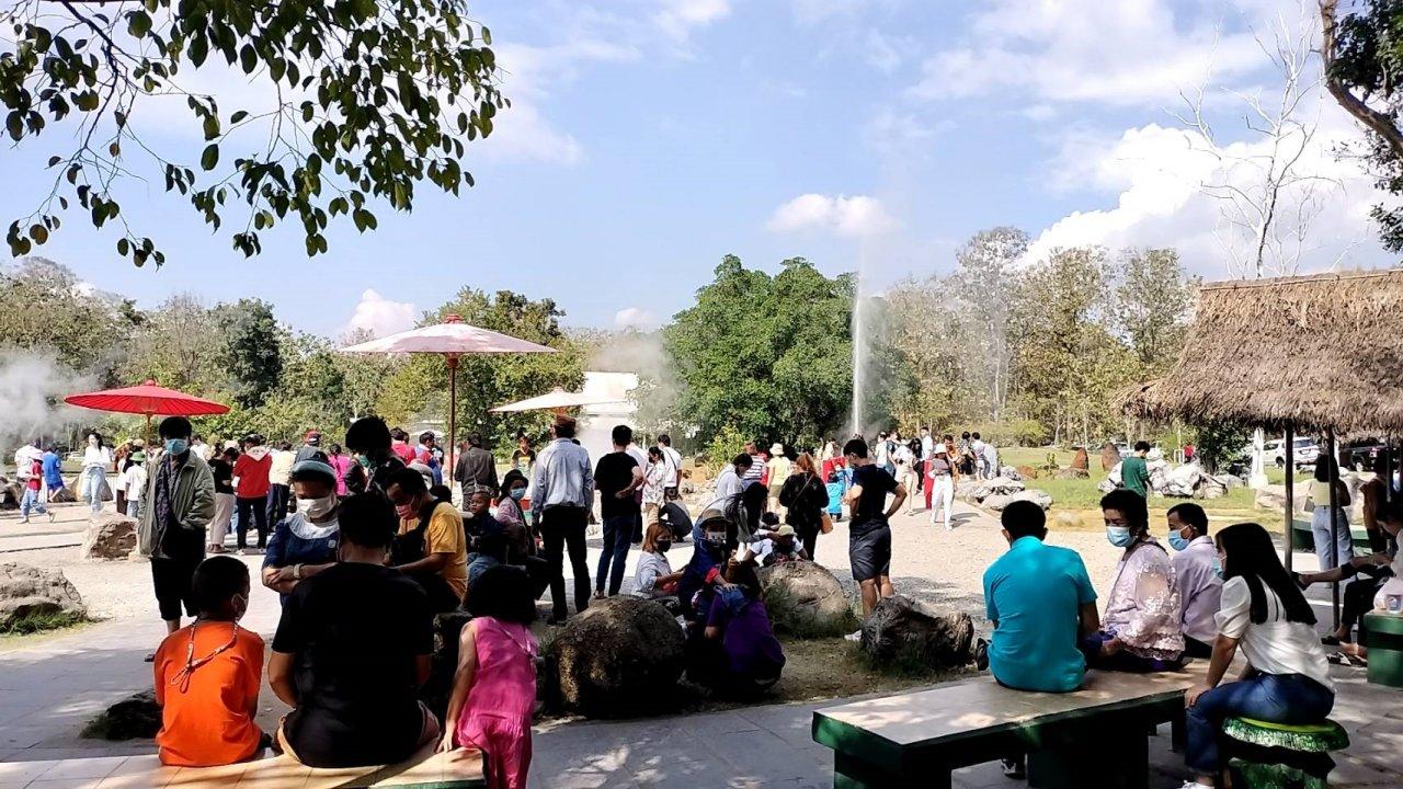 ขณะที่ นายสมควร วงค์คำแดง รอง.ผจก.สถานที่ “น้ำพุร้อนสันกำแพง” โครงการพระราชดำริฯ ได้เปิดเผยว่า ได้มีนักท่องเที่ยวมาพักผ่อนกันเยอะมากเป็นพิเศษ มีทั้งต่างประเทศ พาครอบครัวมาเที่ยวพักผ่อน ที่ตามใต้ต้นร่มไม้ใหญ่ แช่เท้าเพื่อสุขภาพเพื่อความอบอุ่นแก่ร่างกาย ที่โครงการที่จัดให้ไว้ สัมผัสบรรยากาศหนาวเย็นอย่างสบาย ต้มไข่ไก่ในบ่อน้ำพุร้อน” ชมน้ำพุร้อนพุ่งขึ้นสูง ประมาณ 12 เมตร มีสวนดอกไม้นานาพันธุ์ เพื่อให้นักท่องเที่ยวได้ถ่ายรูปกันไว้ที่ระลึก สระว่ายน้ำเด็กเป็นน้ำแร่ธรรมชาติ