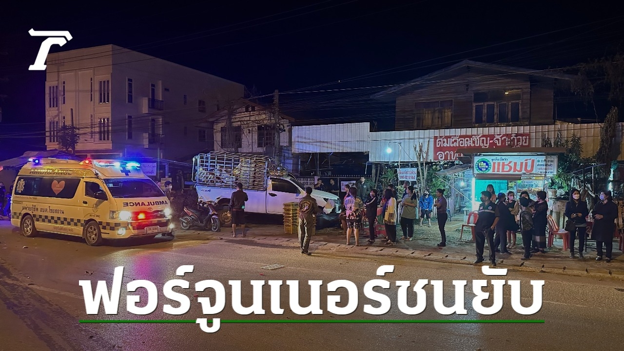 หนุ่มใหญ่ขับฟอร์จูนเนอร์แหกโค้ง พุ่งชนกระบะ-จยย.จอดข้างทาง พังยับเป็นซาก เจ้าของรถทั้ง 2 นั่งกินก๋วยเตี๋ยวใกล้จุดเกิดเหตุ รอดตายหวุดหวิด