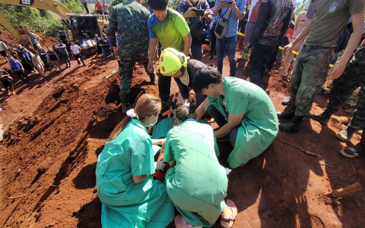 ลุ้นวินาทีสำคัญ กู้ภัยดึงตัวเด็กจากกองดิน