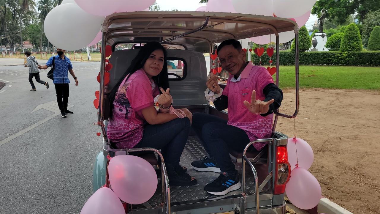 เวลา 13.00 น. วันที่ 18 ก.พ. 2566 ที่ห้องประชุมสำนักงานพัฒนาสังคมและความมั่นคงของมนุษย์ จ.พิษณุโลก บริเวณชั้น 1 ศาลากลางจังหวัดพิษณุโลก นายสุเทพ พร้อมจิต หรือ พี่แมว วัย 52 ปี และ น.ส.ธนาภา เขียวอ่อน หรือ พี่ยุ คู่รักแท้ไม่แพ้ระยะทาง 1,200 กม. พร้อมกับคู่รักที่เข้าร่วมโครงการ “สร้างครอบครัวรัก สมรสไร้หนี้ ชีวีมีสุข” อีก 6 คู่ มี 2 คู่ ที่เป็นผู้พิการทางการได้ยิน ได้เดินทางไปลงทะเบียนเข้าร่วมกิจกรรม โดยมี นางจินตนา จันทร์บำรุง อธิบดีกรมกิจการสตรีและสถาบันครอบครัว พร้อมด้วย นางอรนุช ชัยชาญ พมจ.พิษณุโลก และเจ้าหน้าที่ให้การต้อนรับโดยผูกข้อมือช่อดอกไม้และแต่งหน้าทำผมให้กับคู่รักด้วย จากนั้นจึงจัดการอบรมให้ความรู้เกี่ยวกับครอบครัว ก่อนเริ่มกิจกรรมร่วมฐานกิจกรรมสร้างสัมพันธภาพครอบครัว “4 กิจกรรม สร้างสัมพันธภาพครอบครัวอบอุ่น Chill & /dub @ ถิ่นสองแคว 4 Activity for Relation of Family Warmth Warmth Chill * Fin in Song khwae City"