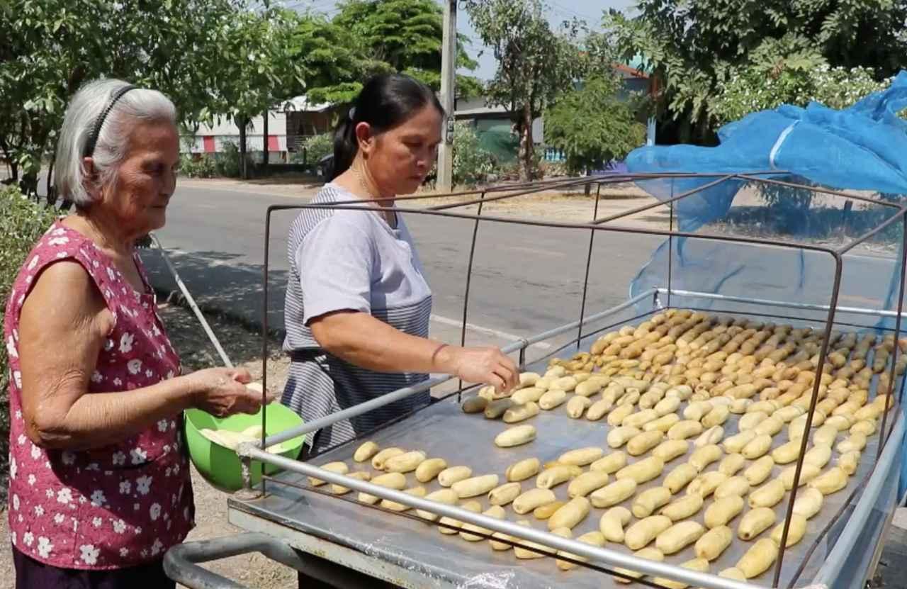 ยายบุญชู ชาวบ้านที่ ต.คณฑี อ.เมืองกำแพงเพชร ใช้เวลาว่างนำเอากล้วยน้ำว้าที่ จากสวนมาแปรรูปทำเป็นผลิตภัณฑ์กล้วยตากแม่บุญชู บรรจุกล่องขายในสื่อโซเชียล สร้างรายได้ให้กับคุณยาย