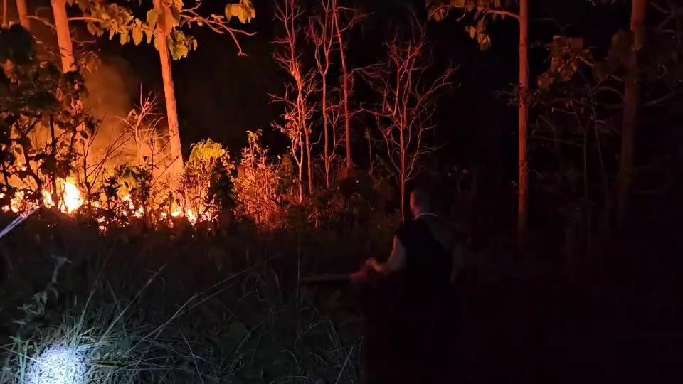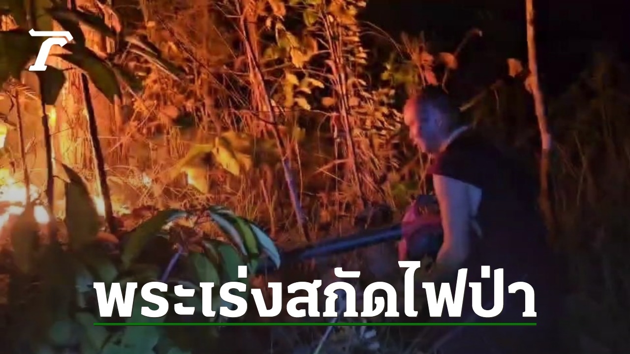 ระทึก พระสงฆ์ กำลังทำวัตรเย็น ต้องถลกจีวรคว้าอุปรณ์เร่งเข้าสกัดไฟป่า หลังลามใกล้วัด พระ เณร ต้องจับเครื่องเป่าไล่ไฟป่า และ จัดกำลังเฝ้าระวังตลอดทั้งคืน