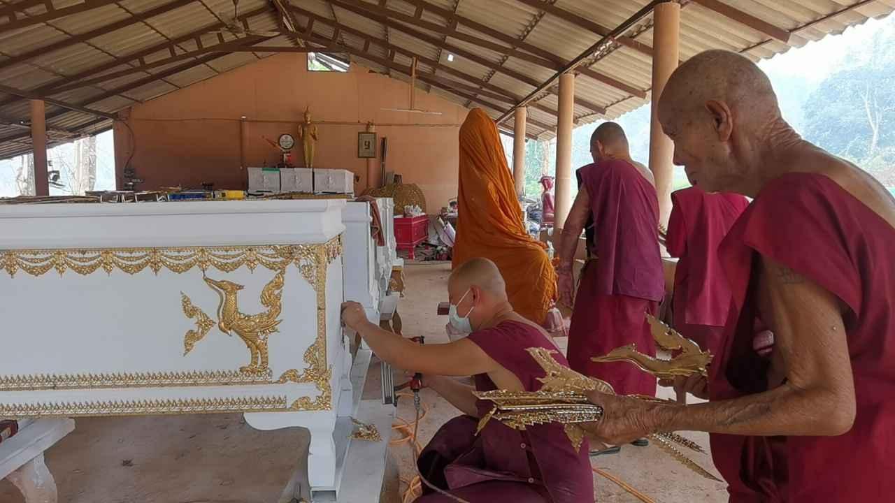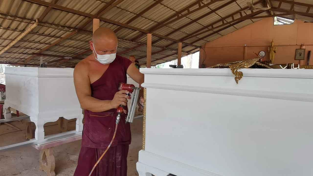 ผู้สื่อข่าวรายงานว่า ที่วัดปางมะกง หมู่ที่ 11 ต.ปิงโค้ง อ.เชียงดาว จ.เชียงใหม่ พระครูเกษมจริยานุกูล (ครูบากิตติชัย) เจ้าอาวาสวัดปางมะกง พร้อมพระลูกวัด รวมถึงเยาวชนที่เป็นเด็กเล็ก เด็กโต และกลุ่มชาวบ้าน กำลังช่วยกันพ่นสีโลงศพ ทำการตกแต่งและจัดทำโลงศพเป็นจำนวนมาก อยู่ภายในศาลาของวัด ซึ่งฝีมือในการทำโลงศพไม่แพ้กับร้านจำหน่ายโลง และทางเจ้าอาวาสได้ลงมือจัดทำด้วยตนเองอย่างชำนาญ จึงได้ขอนมัสการเพื่อสอบถามถึงที่มาของการทำโลงศพเหล่านี้