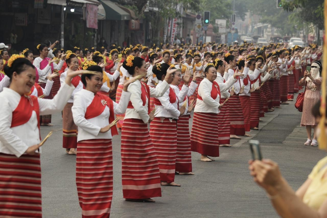ผู้ว่าฯเชียงใหม่ นำประชาชน ทำบุญตักบาตร ครบรอบ 727 ปี เมืองเชียงใหม่ ในงานป๋าเวณีปี๋ใหม่เมือง เพื่อแสดงความกตัญญูกตเวทิตาให้กับดวงพระวิญญาณเจ้าผู้สร้างเมืองนพบุรีศรีนครพิงค์เชียงใหม่ ก่อนที่จะมีพิธีงานยอสวยไหว้สาพระยามังรายปี๋ใหม่เมือง โดยมีแม่หญิงงามเจียงใหม่ กว่า 500 คน แต่งชุดพื้นเมืองทัดดอกเอื้อง เป็นช่างฟ้อนร่วมพิธีบวงสรวงบูรพกษัตริย์