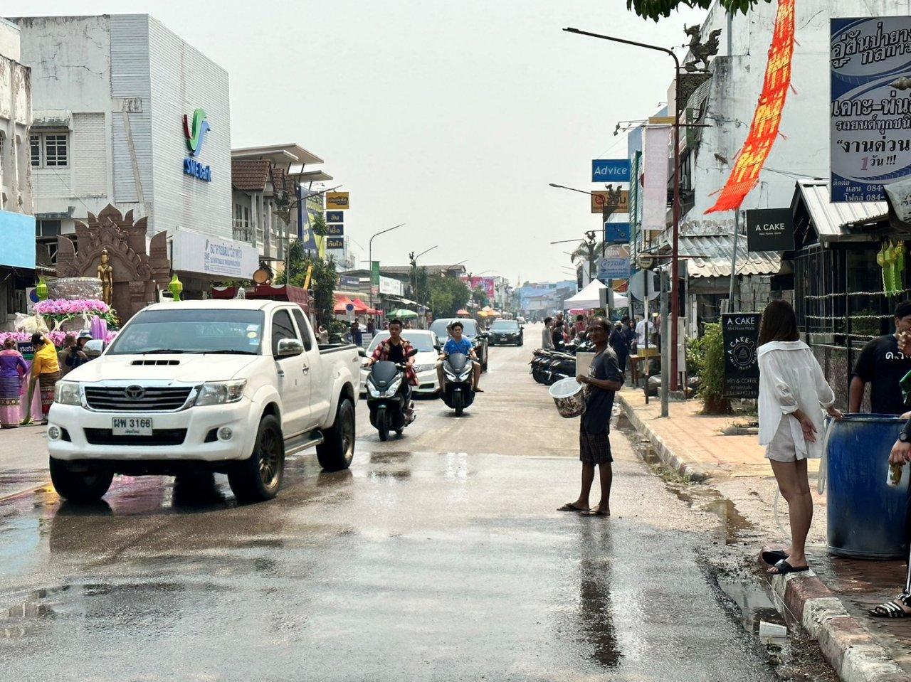 ผู้ว่าฯ ลำพูน ชิมอาหารพื้นเมืองของชุมชนในเขตเทศบาลเมืองลำพูน เนื่องในงานประเพณีสงกรานต์ประจำปี 2566 ขณะที่ บรรยากาศการเล่นน้ำก็สนุกสนานแม้จะเป็นเมืองเล็กๆ หลังว่างเว้นไป 3 ปี