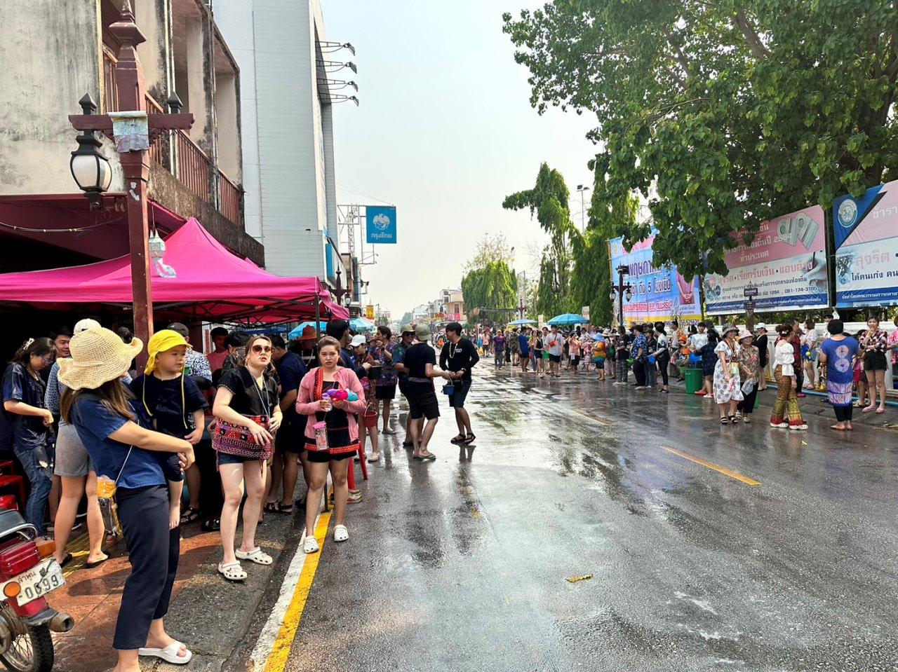 ต่อเมื่อเวลา 15.00 น. ผู้สื่อข่าวรายงานบรรยากาศการเล่นน้ำสงกรานต์บริเวณคูเมืองลำพูน ตอนนี้เริ่มคึกคักเป็นอย่างมาก หลังจากท่างหายไป 3 ปี โดยปีนี้ทางเทศบาลเมืองลำพูนเปิดให้เล่นสาดน้ำสงกรานต์คูเมืองลำพูน อย่างเต็มที่ ท่ามกลางสภาพอากาศที่ร้อนจัด บวกกับหมอกควันไฟป่าปกคลุมไปทั่วเมือง โดยหวังว่าหากประชาชนออกมาเล่นสาดน้ำ อาจจะสร้างความชื้นในชั้นบรรยากาศ และอาจมีฝนตกลงมาได้เหมือนเช่นก่อนหน้านี้ ที่มีงานเทศกาลสงกรานต์แล้วเล่นสาดน้ำกัน