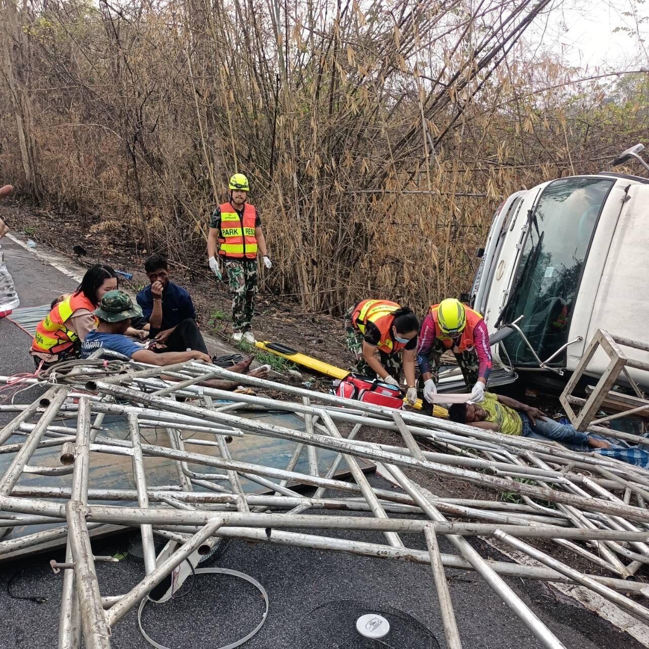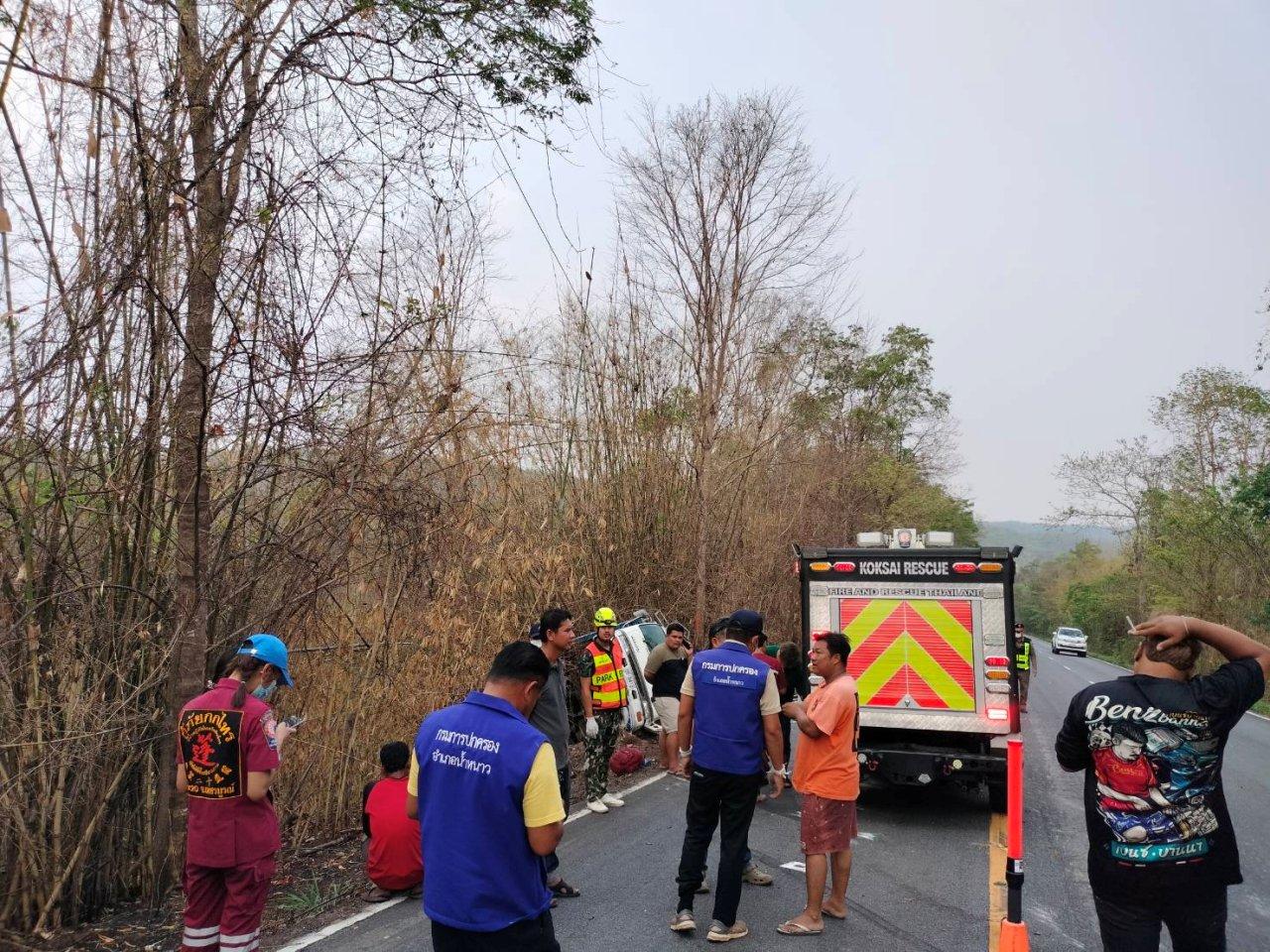 เมื่อเวลา 13.50 น.วันที่ 14 เมษายน 2566 เจ้าหน้าที่ตำรวจสถานีตำรวจภูธรน้ำหนาว ได้รับแจ้งจากจุดน้ำหนาวว่า มีอุบัติเหตุรถหกล้อฮีโน่สีขาว หมายเลขทะเบียน 86-3419 ขอนแก่น ขนเวทีหมอลำ ลงข้างทาง บริเวณทางหลวงหมายเลข 12 หลักกิโลเมตรที่ 416 (น้ำดุก-ซำมะคาว) ถนนสายหล่มสัก-ชุมแพ ต.โคกมน อ.น้ำหนาว จ.เพชรบูรณ์ มีผู้บาดเจ็บและเสียชีวิต จึงรีบรุดไปในที่เกิดเหตุ พบผู้เสียชีวิตเป็นเพศหญิง 1 ราย และมีผู้บาดเจ็บเป็นเพศชายทั้งหมด 7 ราย จึงประสานอาสาสมัครกู้ภัย ศูนย์ประสานงานหน่วยกู้ภัยกกไทร พ่งไล้ยี่จับเซียวเกาะ จุดน้ำหนาว และหน่วยกู้ชีพ ช่วยนำส่ง รพ.น้ำหนาว จ.เพชรบูรณ์ 4 คน , รพ.คอนสาร จ.ชัยภูมิ 2 คนทั้งหมดอาการสาหัส และ รพ.ชุมแพ จ.ขอนแก่น 1 คนอาการสาหัส