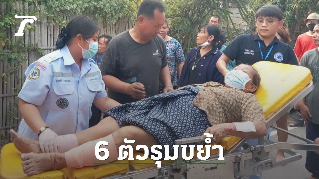 หญิงชราที่ อ.จอมทอง เชียงใหม่เดินหิ้วตะกร้าไปจ่ายตลาดกลับมาทำอาหารเย็น ถูกฝูงสุนัข 6 ตัวกรูจากบ้านหลังหนึ่งรุมกัดแขนขาเป็นแผลทั่วตัวอาการสาหัส พบเป็นฝูงเดียวกับเคยรุมกัดเด็กชายบาดเจ็บก่อนหน้านี้