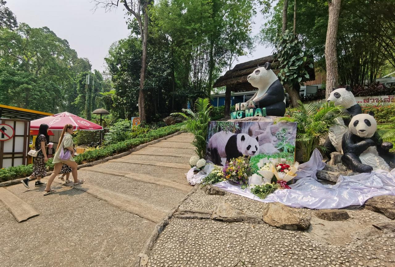 ขณะเดียวกันบริเวณที่ด้านหน้าทางเข้าซึ่งเป็นรูปปั้นครอบครัวแพนด้า ทางสวนสัตว์เชียงใหม่ ก็ได้นำภาพของหลินฮุ่ยไปติดตั้งไว้ และเปิดโอกาสให้นักท่องเที่ยวได้นำดอกไม้มาร่วมวางไว้อาลัยต่อการจากไปของหมีแพนด้าหลินฮุ่ย และมีจุดจำหน่ายดอกไม้หากนักท่องเที่ยวต้องการ ซึ่งทางสวนสัตว์เชียงใหม่ยังคงจัดนิทรรศการแบบนี้ไปอีกนาน
