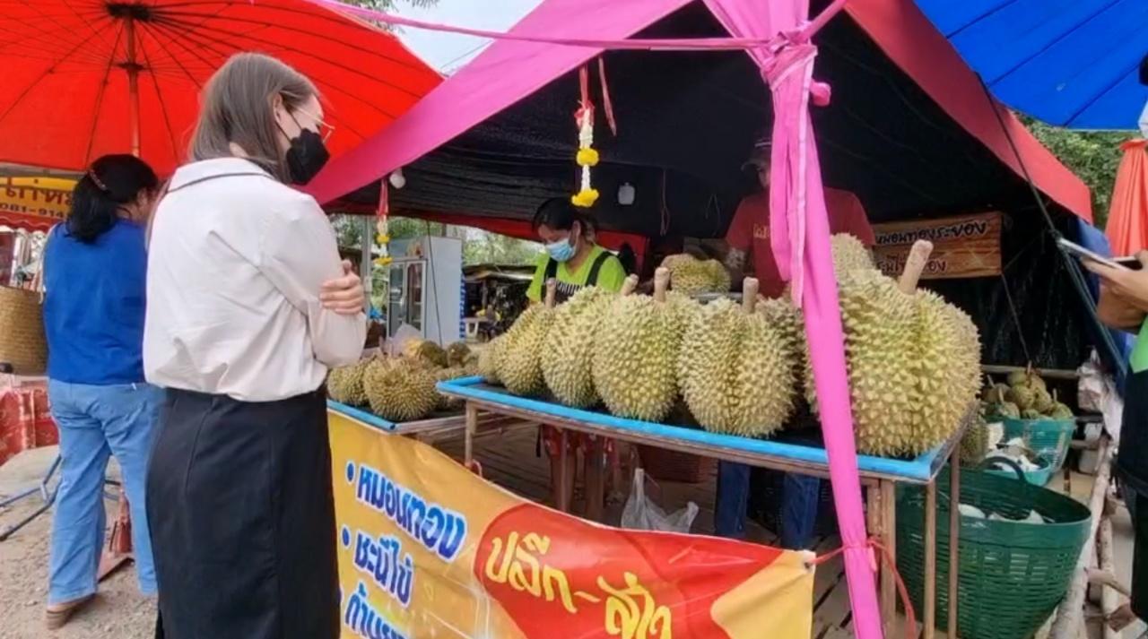 มาซื้อทุเรียนน้องอั้ม สาวแซ่บริมทาง ที่กำแพงเพชร หน้าร้านคึกคักขึ้นทันที แฟนคลับแห่ถ่ายรูป เสี่ยคนดังหยอดคำหวาน ถามแม่ค้ามีเจ้าของหรือยัง พร้อมส่งสายตาเจ้าชู้