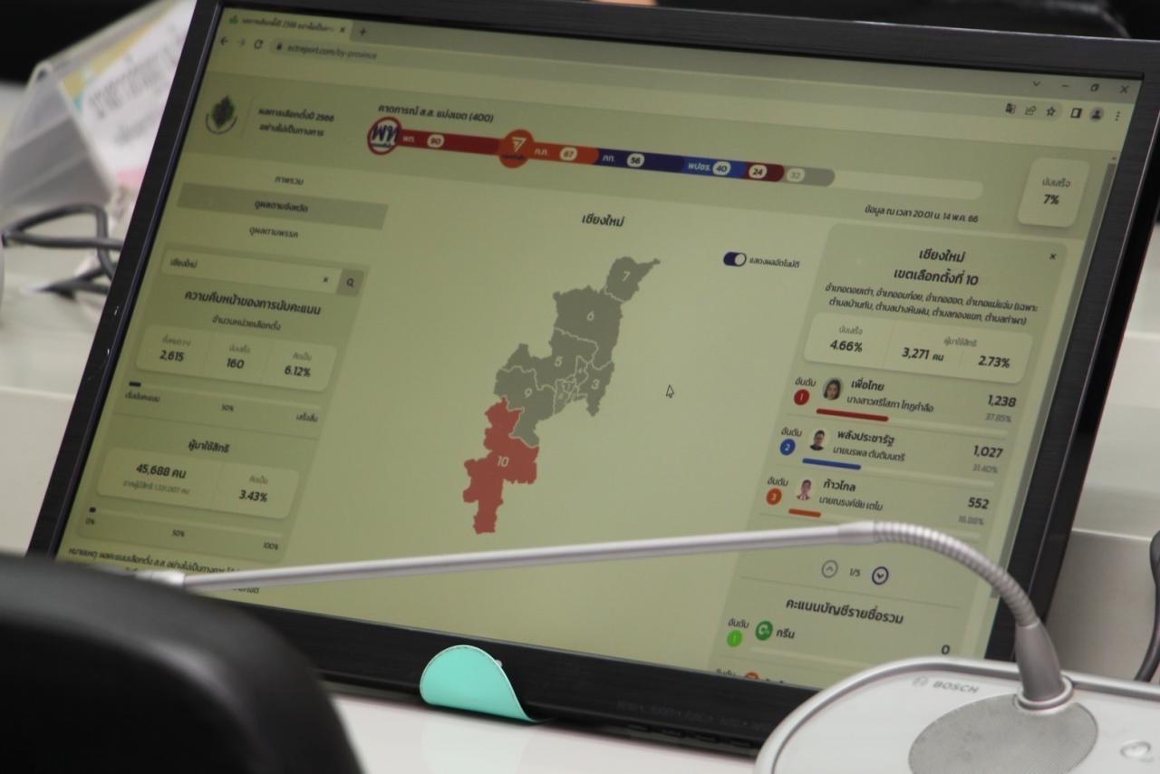 เมื่อเวลา 22.30 น วันที่ 14 พ.ค. 66 ที่ จ.เชียงใหม่ กกต.เชียงใหม่ ได้รายงานผลคะแนนอย่างไม่เป็นทางการ จาก 10 เขต ส.ส.พรรคเพื่อไทย มีคะแนนนำในเขต 3,5,9,10 ส่วนพรรคก้าวไกล ส.ส. มีคะแนนนำในเขต 1,2,4,6,7,8, พรรคก้าวไกล ยึดพื้นที่ 6 เขต เพื่อไทย ได้ 4 เขต