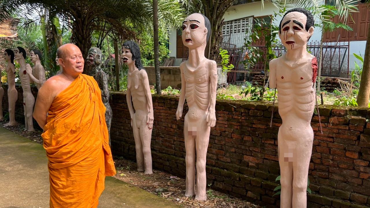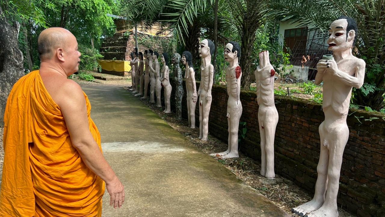สำหรับในวัดแห่งนี้ นอกจากรูปปั้นเปรตที่เหมือน 2 ลุงแล้ว ยังมีรูปปั้นคติธรรมต่างๆ เช่น การตาย การตกนรกเพราะทำบาป ให้พุทธศาสนิกชนที่เข้าไปเที่ยวชมได้ร่วมทำบุญอีกด้วย.