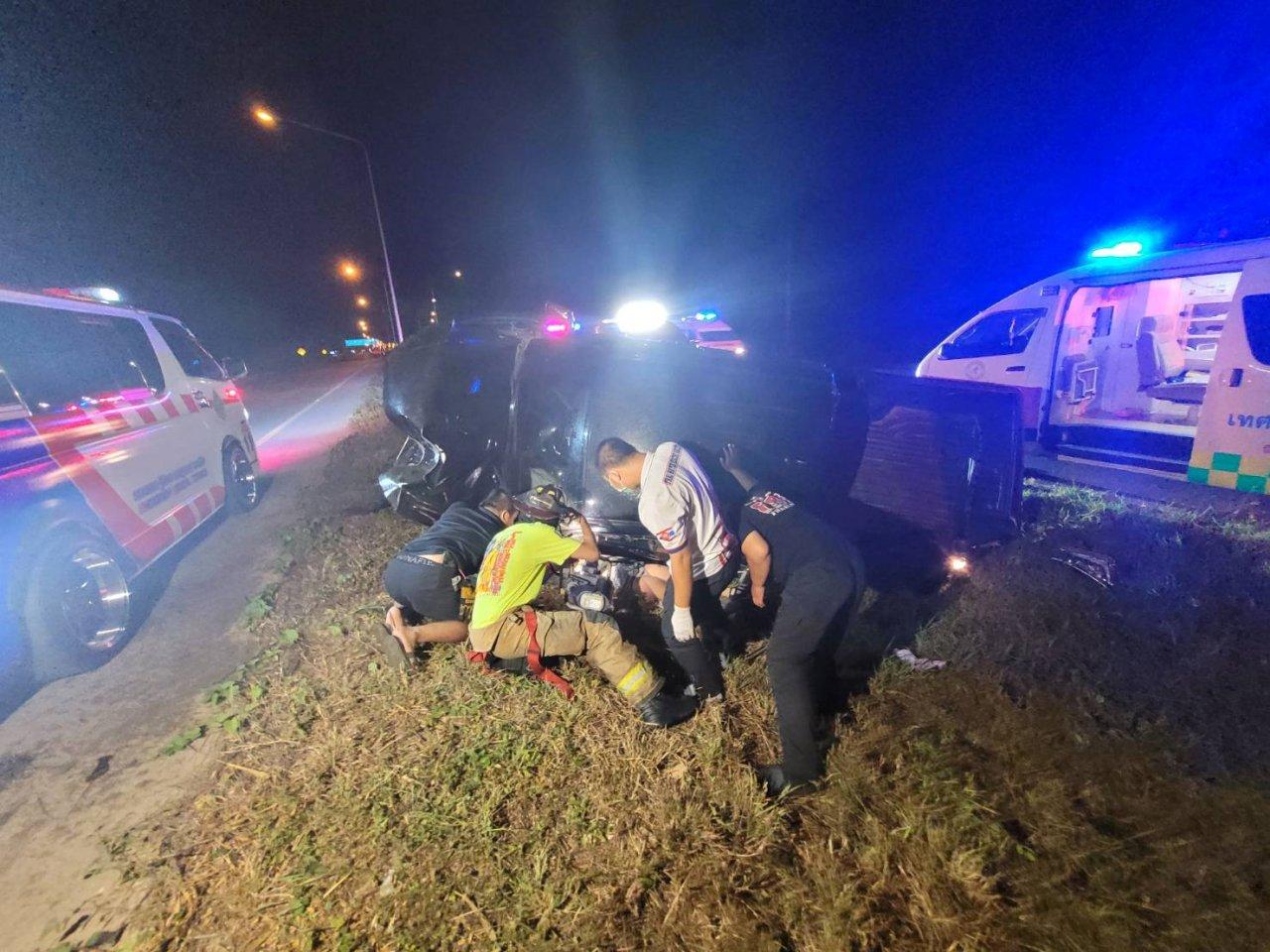 สาวเชียงใหม่ขับกระบะเสียหลักชนเสาไฟฟ้าพลิกลงร่องกลาง โดนรถทับร่างเจ็บสาหัส บนถนนวงแหวนรอบ 2 ทางเจ้าหน้าที่ต้องงัดร่างออกมาแล้วปั๊มหัวใจยื้อชีวิต ก่อนนำส่ง รพ.นครพิงค์ คาดขับมาเร็วแล้วเสียหลัก อีกทั้งไม่คาดเข็มขัดนิรภัย ทำให้ตัวหลุดจากห้องโดยสาร