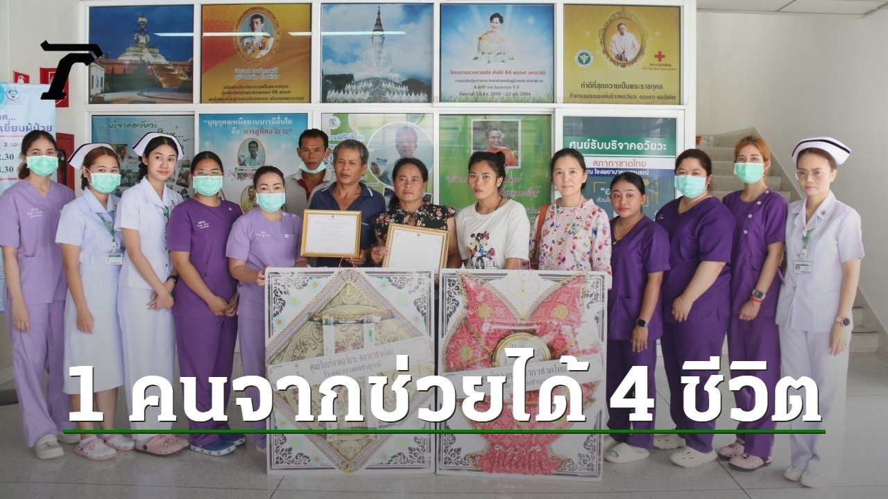 ครอบครัวของหนุ่มเพชรบูรณ์วัย 51 ที่ประสบอุบัติเหตุรถชนจนสมองตาย ตัดสินใจบริจาคอวัยวะเพื่อต่อชีวิตเพื่อนมนุษย์อีก 4 คน โดยมอบไต 2 ข้าง และกระจกตาทั้ง 2 ข้าง แก่สภากาชาดไทย ที่ รพ.เพชรบูรณ์ เพื่อทำบุญใหญ่ครั้งสุดท้ายให้ผู้ตายไปยังภพภูมิที่ดี