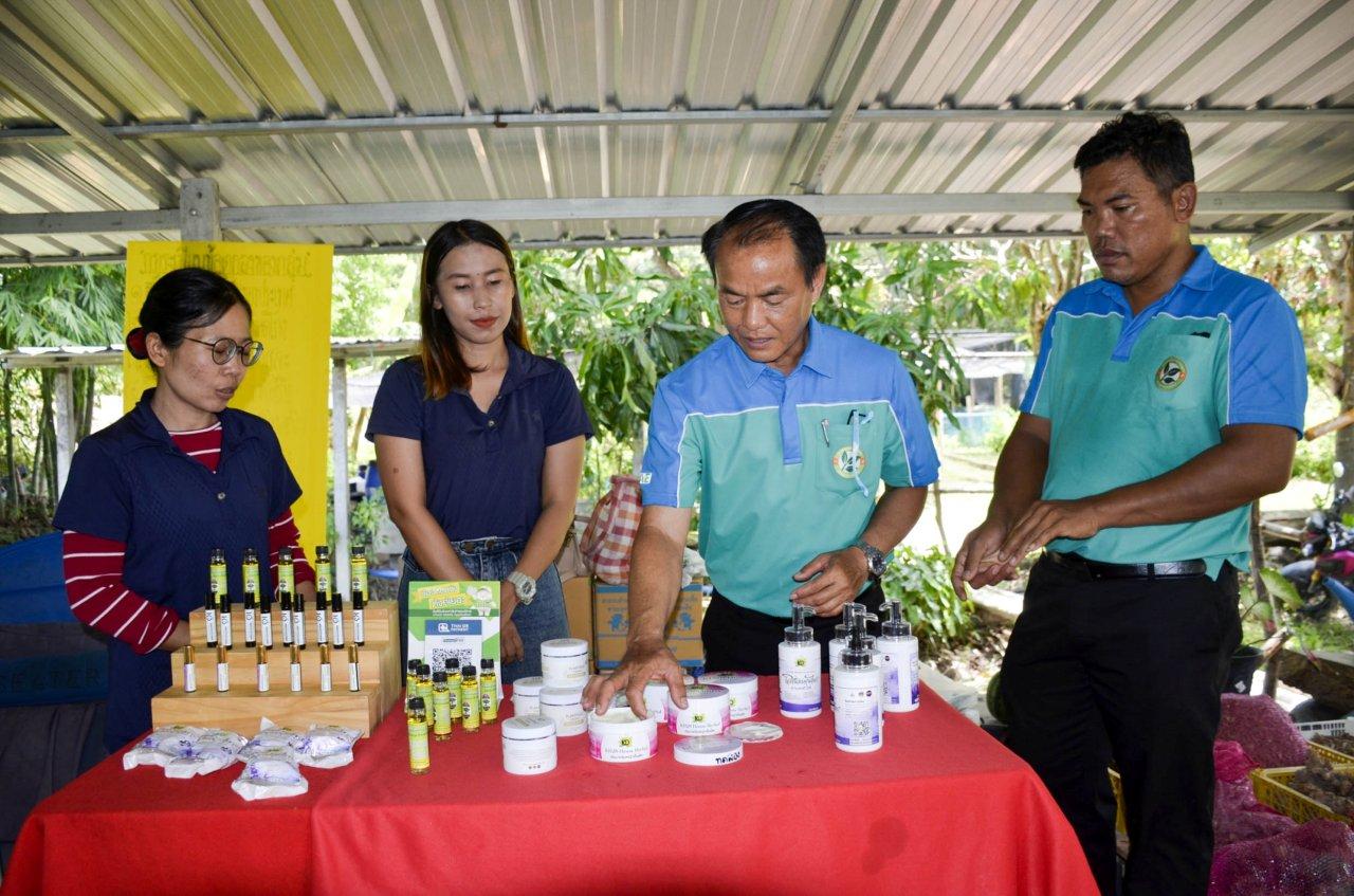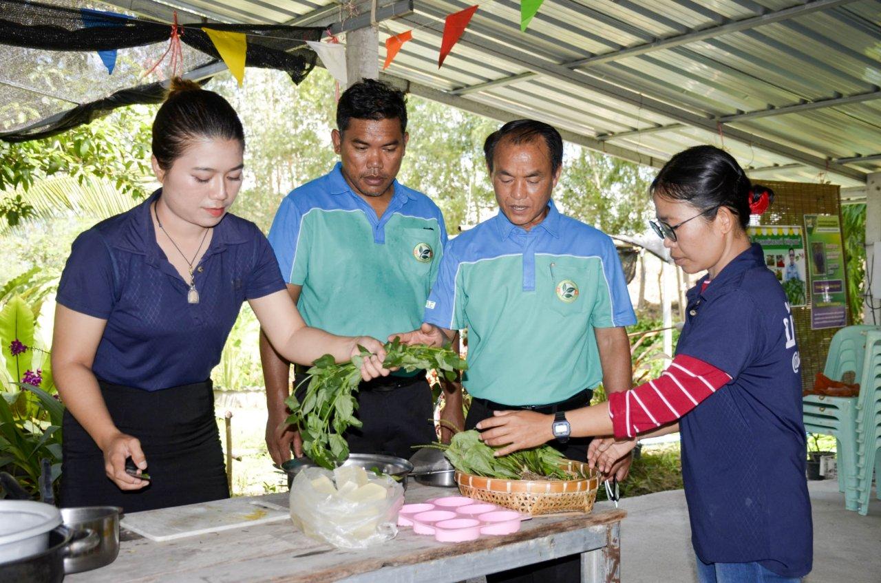 ประธานวิสาหกิจชุมชนสวนเกษตรพืชผักปลอดภัย กล่าวอีกว่า จุดเริ่มต้นที่นี่ เมื่อปี พ.ศ 2561 มาทำสมุนไพรตอนแรกก็เริ่มประมาณ 2-3 ชนิด ตามตำรับยาที่แพทย์แผนไทยให้มา เพื่อให้รู้จริงรู้ลึกสามารถนำความรู้ที่ได้มาส่งต่อได้ จึงไปศึกษาเรียนแพทย์แผนไทยที่วิทยาลัยชุมชนตาก อีก 3 ปีครึ่ง ปัจจุบันจบหลักสูตรอนุปริญญา สาขาวิชาการแพทย์แผนไทย สอบใบประกอบวิชาชีพแพทย์แผนไทยได้ ปัจจุบันมีสมุนไพรกว่า 700 กว่าชนิด นำมาเป็นตำรับยาแปรรูปโลชั่นสมุนไพร ซึ่งวันนี้ได้สาธิตการทำสบู่สมุนไพร โดยการนำสมุนไพรหลัก หญ้าเอ็ดยืด ช่วยเรื่องผิวที่เกิดจากรอยไหม้จากแสงแดด ใบบัวบกทำให้ผิวเรียบเนียนชุ่มชื่น เหงือกปลาหมอ เสลดพังพอนตัวเมีย ช่วยเรื่องผดผื่นคันแมลงกัดต่อยได้