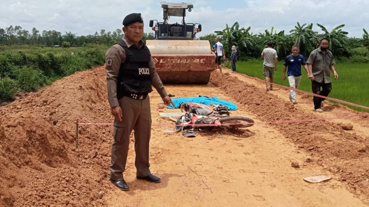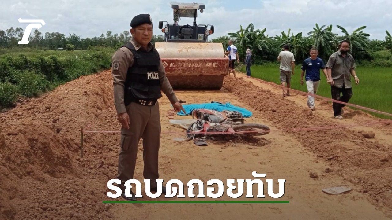 อุบัติเหตุที่อ.เทิง เชียงราย รถบดถนนกำลังทำงาน คนขับไม่ทันระวังถอยชนจยย.ที่วิ่งตามหลัง ทับจมดินที่รถและผู้ขับขี่ เสียชีวิตคาที่
