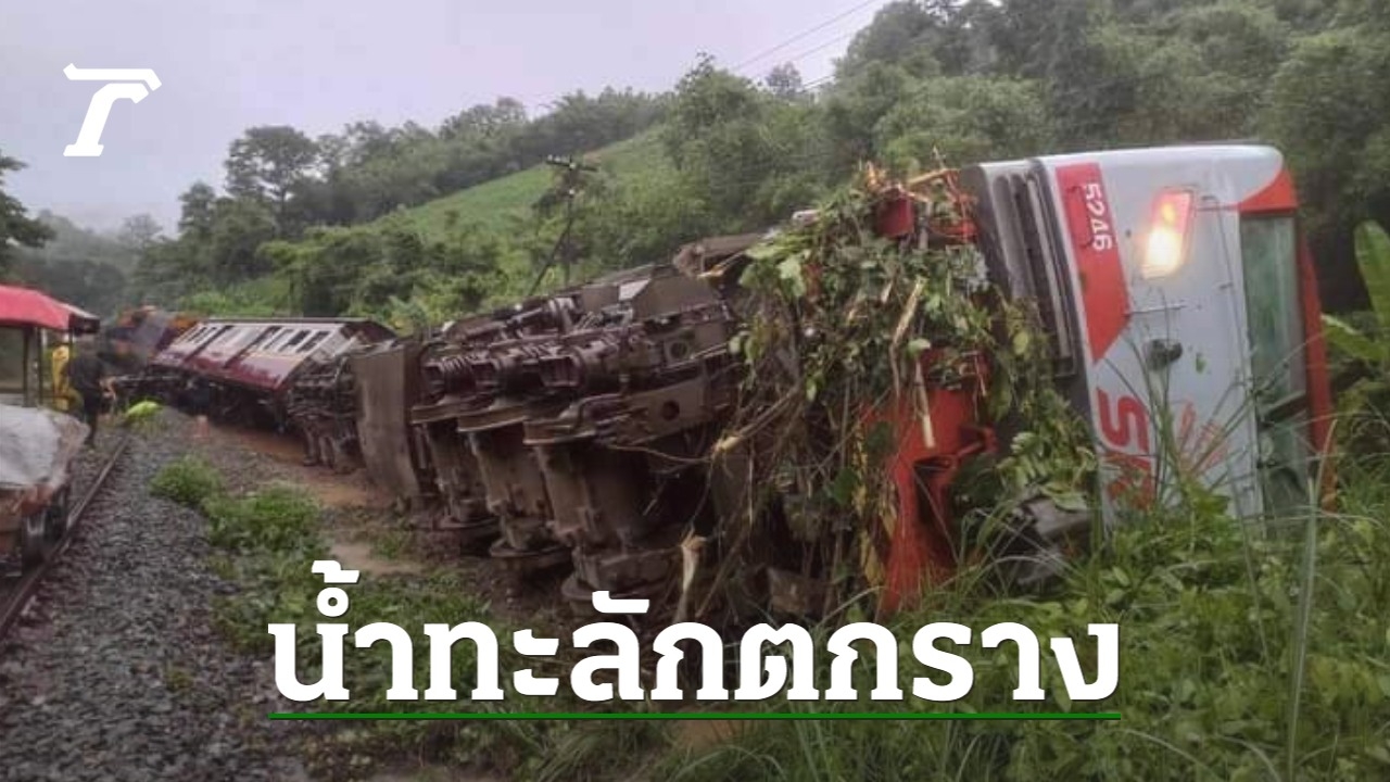 "แพร่" ฝนถล่ม-น้ำป่าทะลักหลากท่วมหลายพื้นที่ บ้าน-รถ-ถนนจม ทางรถไฟขาด ม้าเหล็กด่วนพิเศษตกรางพลิกตะแคงเกือบทั้งขบวน ทำเส้นทางสายเหนือชะงัก จนท.เร่งกู้-แจ้งเปลี่ยนเส้นทางเดินรถ