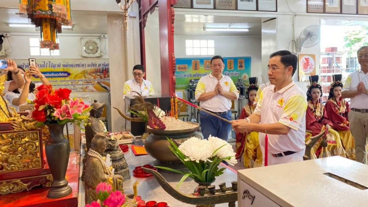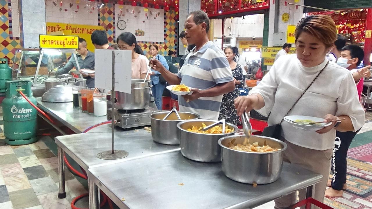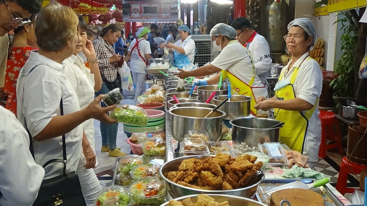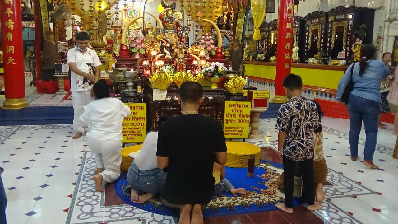 วันนี้เป็นวันแรกของเทศกาลกินเจ ทำให้มีนักแสวงบุญเดินทางมากันเป็นจำนวนมาก โดยพาครอบครัวมากราบไหว้องค์เจ้าพ่อเห้งเจีย และสิ่งศักดิ์สิทธิ์ที่อยู่ในศาลเจ้า เพื่อขอพรให้ประสบแต่ความสุขความเจริญ และร่วมรับประทานอาหารเจฟรี พร้อมทำบุญบริจาคสิ่งของข้าวสารอาหารแห้งแก่โรงทาน ที่กำลังประกอบอาหารเจกว่า 30 ชนิด ให้ประชาชนรับประทานฟรีทุกวัน
