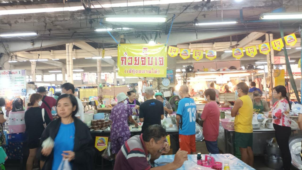 ในแต่ละวันของเทศกาลกินเจ ร้านป้าตี่ จะทำอาหารมาจำหน่ายไม่ต่ำกว่า 10 ชนิด หมุนเวียนกันไป อาทิ ผัดขิง ผัดหมูกรอบ ต้มปลาร้าหน่อไม้ แกงส้ม ต้มพะโล้ ต้มจับฉ่าย ยำหมูกรอบ เต้าเจี้ยว ขนมปัง เป็นต้น นอกจากนี้ยังมีอีกหลายร้านที่เปลี่ยนจากเคยขายอาหารปกติได้หันมาขายอาหารเจ เช่น ร้านก๋วยจั๊บเจ๊กุ้งตลาดใต้ ที่ขายก๋วยจั๊บเจ มีคนมาต่อคิวซื้อกันหนาแน่น ส่วนบริเวณโซนกลางตลาดมีผักทอด และลูกชิ้นเจทอด วางขายด้วยเช่นกัน.