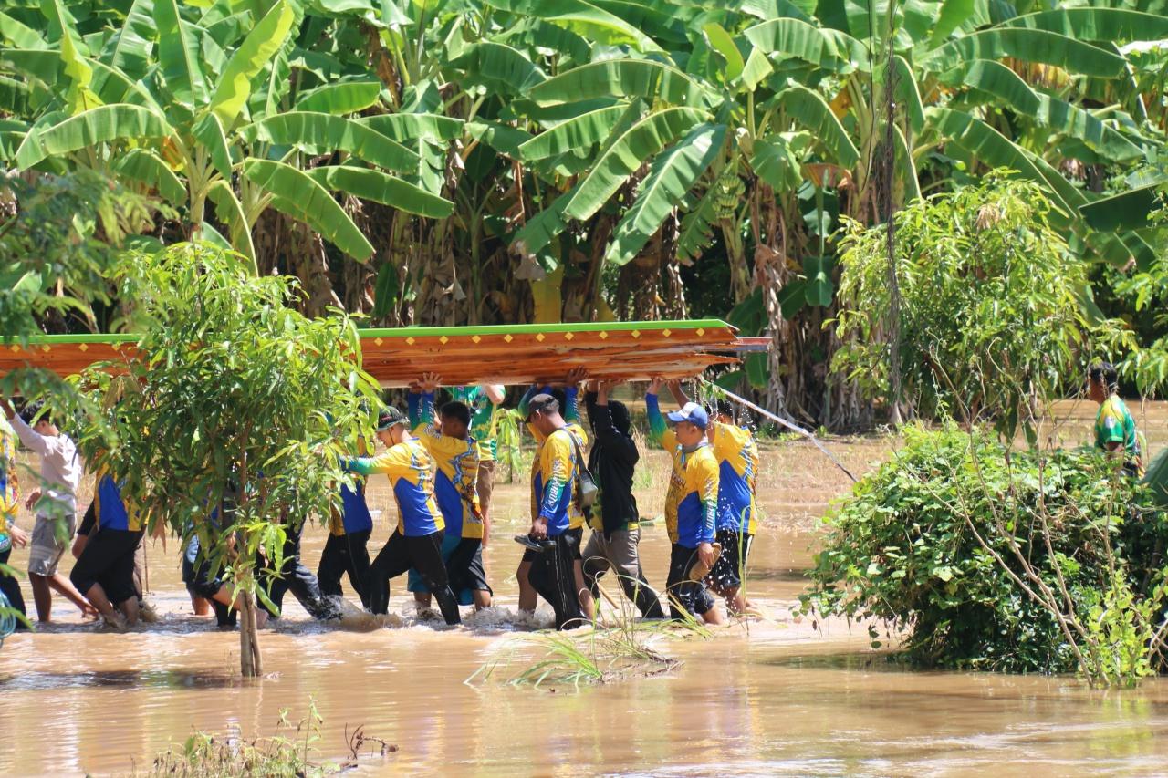 จากนั้นกระแสน้ำได้พัดหัวเรือที่หักไปติดอยู่กับต้นมะเดื่อใกล้กับสะพาน ส่วนตัวเรือได้ไหลไปติดอยู่กับป่ากล้วยของชาวบ้าน ที่อยู่ห่างออกไปประมาณ 1 กิโลเมตร อาสากู้ภัยมูลนิธิร่มโพธิ์เข้าให้การช่วยเหลือ และสามารถนำเรือขึ้นฝั่งได้สำเร็จ โดยที่ไม่มีใครได้รับบาดเจ็บหรือเสียชีวิต