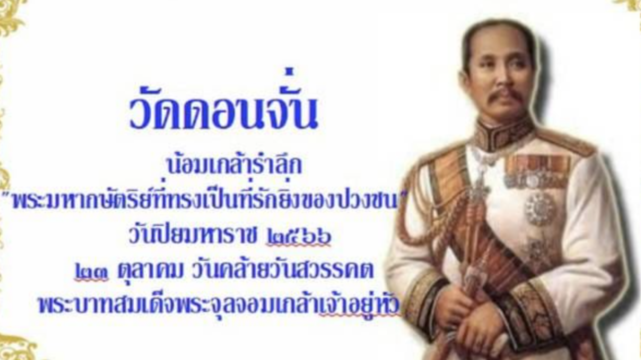 ผู้สื่อข่าวรายงานว่า เจ้าคุณพระประชานาถมุนี (หลวงพ่ออานันท์) เจ้าอาวาสวัดดอนจั่น อ.เมือง จ.เชียงใหม่ เตรียมจัดพิธีเทวาภิเษก-พุทธาภิเษก วันปิยมหาราช ทำบุญตักบาตร สืบชะตาเสริมดวงประเทศไทย พร้อมน้อมรำลึกในพระมหากรุณาธิคุณ พระบาทสมเด็จพระจุลจอมเกล้าเจ้าอยู่หัว ในวันที่ 23 ต.ค. 2566 เวลา 07.00 น. ณ บริเวณลานอนุสาวรีย์ ร.5 วัดดอนจั่น โดยบรรดาลูกศิษย์ และประชาชนทั่วไปสามารถเข้าร่วมพิธีได้ตามวันเวลาดังกล่าว