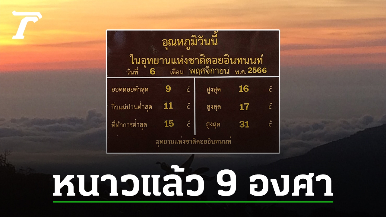หนาวแล้ว "ดอยอินทนนท์" เช้านี้เย็นจับใจ อุณหภูมิลบฮวบ 9 องศา นักท่องเที่ยวแห่ขึ้นไปสัมผัสอากาศ และชมทะเลหมอก ดูอาทิตย์ยามเช้า พร้อมเดินเที่ยวส่องกุหลาบพันปี โดยทางอุทยานฯ เผยเมื่อวานมีคนมาเที่ยวเกือบ 3.5 พันคน