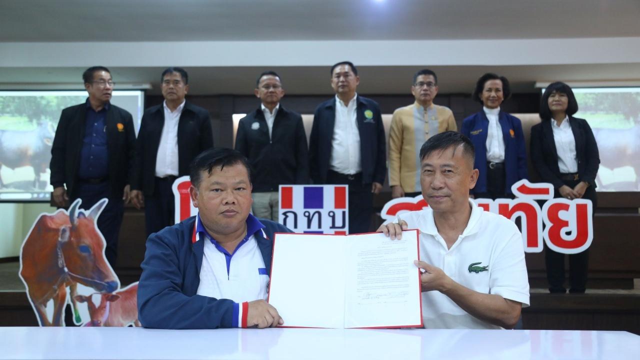 ผู้สื่อข่าวรายงานว่า ในช่วงท้ายการมอบนโยบาย ได้มีการทำเอ็มโอยูระหว่างกองทุนหมู่บ้าน กับ นายสมบูรณ์ นิรุตติเมธี หรือ "ทนายต๋อย" ผู้บริหารสนามกีฬาชนโคทุ่งทะเลหลวงสุโขทัย เพื่อทำสัญญาการรับซื้อลูกวัวชน จากผู้ที่เข้าร่วมโครงการ ซึ่งถือว่าเป็นการการันตีว่า มีผู้รับซื้อลูกวัวชนอย่างแน่นอน
