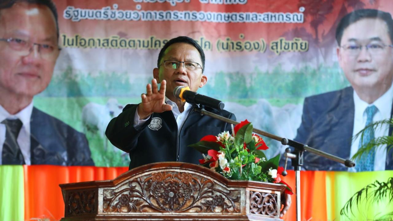 เมื่อวันที่ 17 พ.ย.66 ที่ จ.สุโขทัย นายสมศักดิ์ เทพสุทิน รองนายกรัฐมนตรี เป็นประธานการมอบนโยบายให้แก่สมาชิกกองทุนหมู่บ้าน พร้อมติดตามผลการดำเนินงานโครงการส่งเสริมอาชีพเลี้ยงโค นำร่อง จ.สุโขทัย โดยมี นายอนุชา นาคาศัย รัฐมนตรีช่วยว่าการกระทรวงเกษตรและสหกรณ์, นายสุชาติ ทีคะสุข ผู้ว่าราชการจังหวัดสุโขทัย, นายมนู พุกประเสริฐ นายก อบจ.สุโขทัย, นางพรรณสิริ กุลนาถศิริ สส.สุโขทัย พรรคเพื่อไทย, นายจักรวาล ชัยวิรัตน์นุกูล สส.สุโขทัย พรรคเพื่อไทย, นายกฤษณ์พีรัช คมสุรศิษฐ์ รองผู้อำนวยการสำนักงานกองทุนหมู่บ้านและชุมชนเมืองแห่งชาติ เข้าร่วม