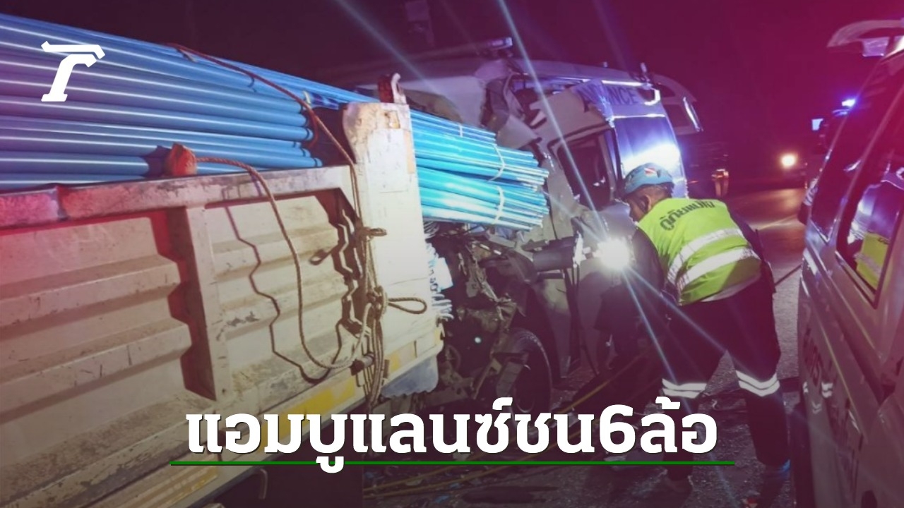 รถฉุกเฉินโรงพยาบาลพร้าวกลับจากส่งตัวผู้ป่วยที่โรงพยาบาลนครพิงค์ พุ่งชนรถบรรทุก 6 ล้อขนวัสดุก่อสร้างยางแตกจอดข้างทางถนนสายเชียงใหม่-พร้าว พยาบาลและคนขับรถเสียชีวิตคาที่