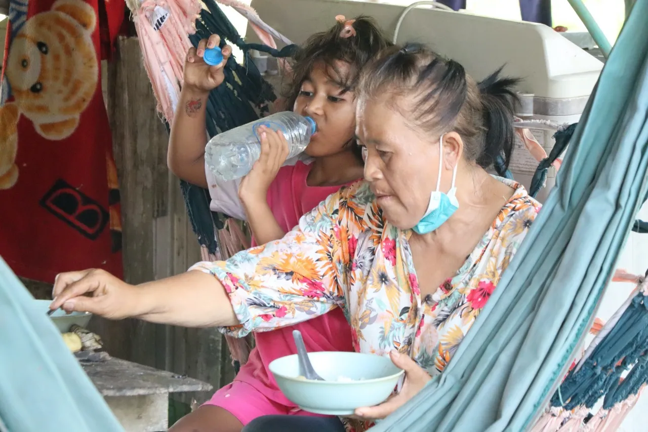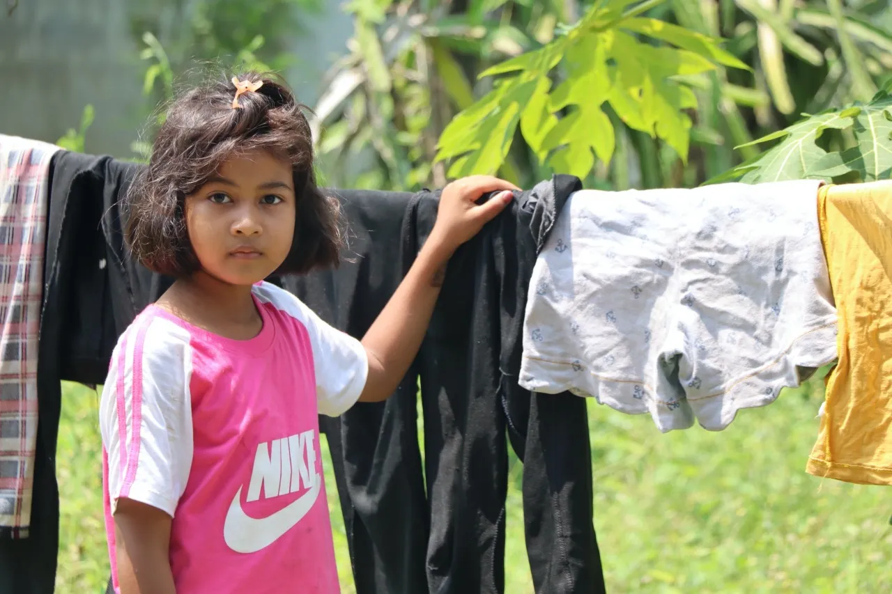 น้องจูนเล่าให้ฟังว่านอกจากในแต่ละวันต้องปั่นจักรยานไปขอข้าวที่วัดมากินกับยายแล้ว ก็จะใช้เวลาว่างช่วยยายทำงานบ้าน โดยเฉพาะการซักผ้าที่ต้องทำเองทุกขั้นตอน ตั้งแต่ซักและนำไปตาก หากวันไหนผ้าเยอะกองโตก็จะต้องหยุดเรียนมาซักผ้า ส่วนกับข้าวที่ไปขอจากวัด วันนี้ไม่ได้มา เนื่องจากกับข้าวที่วัดมีน้อย พรุ่งนี้ต้องไปขอใหม่ เลยต้องกินข้าวกับกล้วยสุกไปก่อน สิ่งที่น้องจูนอยากได้ตอนนี้คือข้าวมาไว้หุงกินกับยาย ส่วนเรื่องเรียน ยังไม่รู้เลยว่าจะไปอย่างไรต่อ หากยายไม่มีเงินให้เรียนต่อ ก็ไม่เรียนเพราะไม่มีอะไรไปเรียน แม้ใจจริงจะอยากเรียนก็ตาม