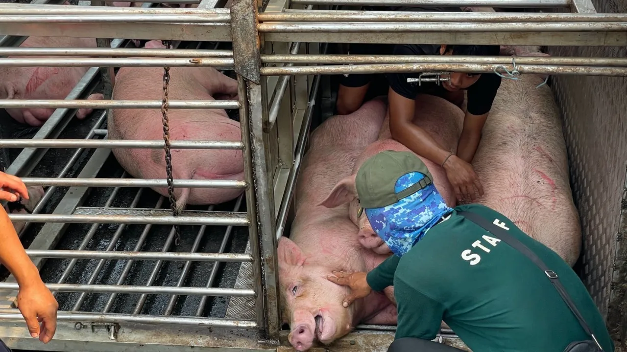 รถบรรทุกหมู เตรียมเข้าโรงเชือดเกิดพลิกคว่ำหมูนับร้อยทั้งตายและบาดเจ็บ ผู้ใจบุญผ่านมาประสบเหตุ เจรจาช่วยไถ่ชีวิตหมูที่เหลือทุกตัว