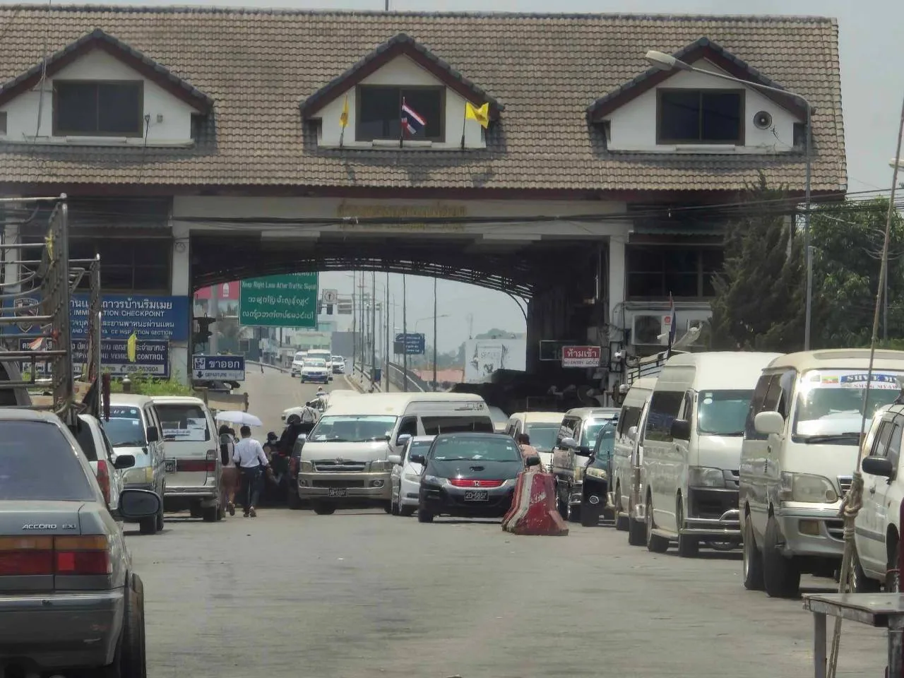 ที่ด่านพรมแดนถาวรแม่สอดแห่งที่ 1 ตรงข้ามกับด่านพรมแดนถาวรเมียวดีแห่งที่ 1 หลังเสียงปืนใหญ่ยังคงดังแบบไม่ขาดสายไปทั่วเมืองเมียวดี ก็ส่งผลทำให้ชาวบ้านในตัวเมืองเมียวดีจำนวนมากต่างเร่งเก็บเสื้อผ้าและสิ่งของจำเป็นส่วนตัวใส่กระเป๋าออกจากบ้านพักของตนเองแล้วรีบมาเข้าแถวขอออกนอกประเทศเมียนมาที่ด่านพรมแดนถาวรเมียวดีแห่งที่ 1 แล้วรีบเดินเท้าข้ามสะพานมิตรภาพไทย-เมียนมาแห่งที่ 1 เข้ามาที่ด่านพรมแดนถาวรแม่สอดแห่งที่ 1 จนทำให้การจราจรที่ด่านพรมแดนถาวรแม่สอดแห่งที่ 1 ติดขัดและเต็มไปด้วยชาวเมียวดีจำนวนมากที่เข้าแถวรอตรวจหนังสือผ่านแดนชั่วคราวเข้าประเทศไทยแบบถูกต้องตามกฎหมาย