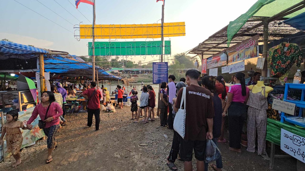 เมื่อเวลา 09.00 น.(14 เม.ย. 67) บรรยากาศสงกรานต์แนวชายแดนไทย-เมียนมา เมื่อช่วงเช้าที่ผ่านมา คลื่นมหาชนทั้งคนไทยและคนเมียนมาจำนวนหลายพันคนจากฝั่งชายแดนอำเภอแม่สอด จังหวัดตาก และจากฝั่งชายแดนจังหวัดเมียวดี ประเทศเมียนมา ต่างร่วมกันจัดกิจกรรมสงกรานต์สองแผ่นดินอย่างยิ่งใหญ่ในรอบ 3 ปี ที่ท่าธรรมชาติบ้านแม่กุท่าซุง หมู่ที่ 9 ตำบลมหาวัน อำเภอแม่สอด จังหวัดตาก โดยบริเวณแนวตลิ่งริมแม่น้ำเมยฝั่งไทยมีการตั้งร้านจำนวนอาหารพื้นเมือง ส่วนริมตลิ่งแม่น้ำเมยฝั่งประเทศเมียนมา สีสันไม่แพ้กัน มีตั้งซุ้มอาหารพื้นเมืองเมียนมา พร้อมตั้งเวทีเครื่องเสียงริมแม่น้ำเมย เปิดเพลงเต้นรำกันอย่างสนุกสนานแบบที่ไม่เคยเกิดขึ้นมาก่อนในรอบ 3 ปี หลังประเทศเมียนมาเกิดความไม่สงบภายในประเทศ และสถานการณ์ความตึงเครียดได้ผ่อนคลายลงในช่วงเทศกาลวันสงกรานต์