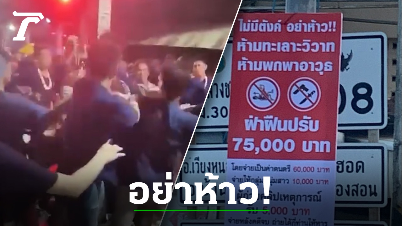 พร้อมกันนี้ได้มีการติดป้ายเตือนมีข้อความว่า “ไม่มีตังค์ อย่าห้าว!! ห้ามพกพาอาวุธ ฝ่าฝืนปรับ 7,500 บาท โดยจ่ายค่าดนตรี 60,000 บาท จ่ายให้กลุ่มหนุ่มสาว 10,000 บาท ผู้ถ่ายคลิปเหตุการณ์ 5,000 บาท จ่ายหลังคดีจบ ถ่ายได้กี่ท่านให้หารกัน ด้วยเงินจำนวนที่ตั้งไว้”