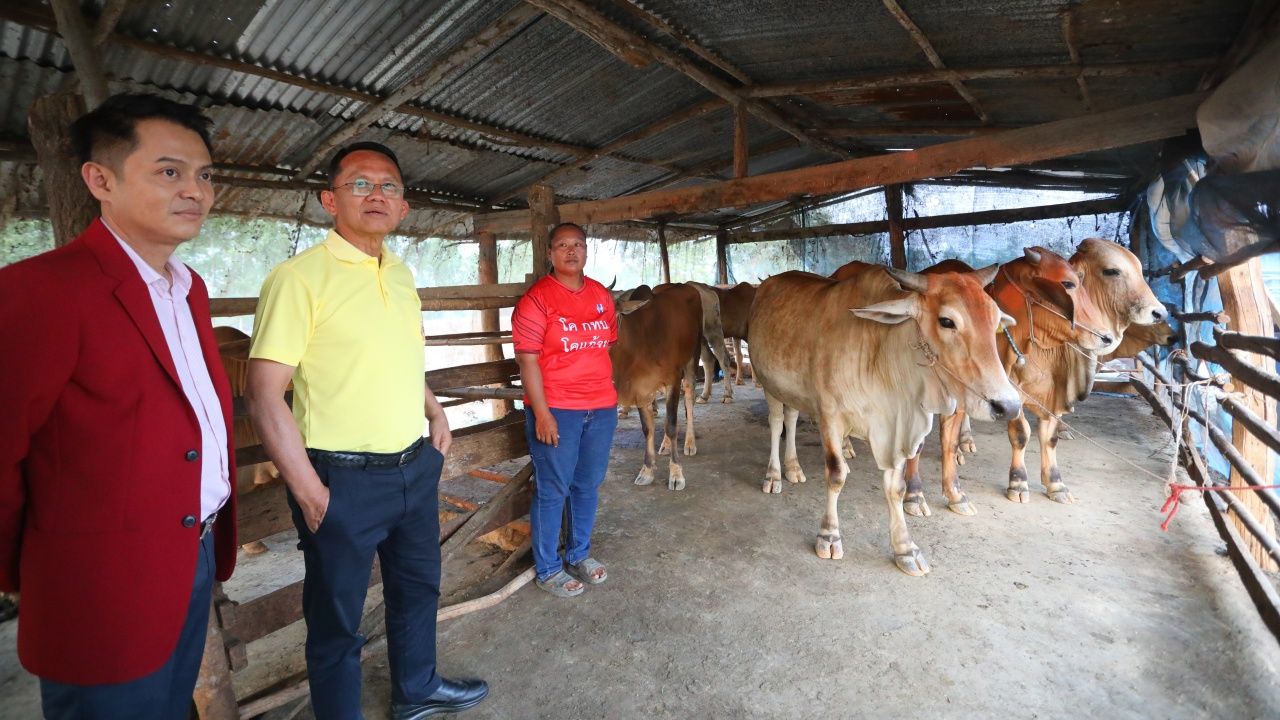 นอกจากนี้ ภายหลังพบปะกับเกษตรกรผู้เลี้ยงโคเนื้อ นายสมศักดิ์ พร้อมคณะได้เดินทางลงพื้นที่บ้านของครอบครัวที่เลี้ยงวัวนำร่องประสบความสำเร็จ โดยเกษตรกร อธิบายว่า ตนได้รับเงินสนับสนุนมา 30,000 บาท เพื่อซื้อวัว 2 ตัว ผ่านมา 4 ปี 5 เดือน ตนมีวัวรวมแล้ว 11 ตัว ซึ่งในจำนวนนี้มีตัวผู้อยู่จำนวน 3 ตัว โดยสามารถขายแล้วนำเงินไปซื้อตัวเมีย เพื่อขยายพันธุ์ต่อได้อีก ทำให้ปัจจุบั ตนไม่มีหนี้สินและมีเงินใช้เพียงพอ จึงขอขอบคุณที่ได้ผลักดันโครงการที่เป็นประโยชน์กับเกษตรกร