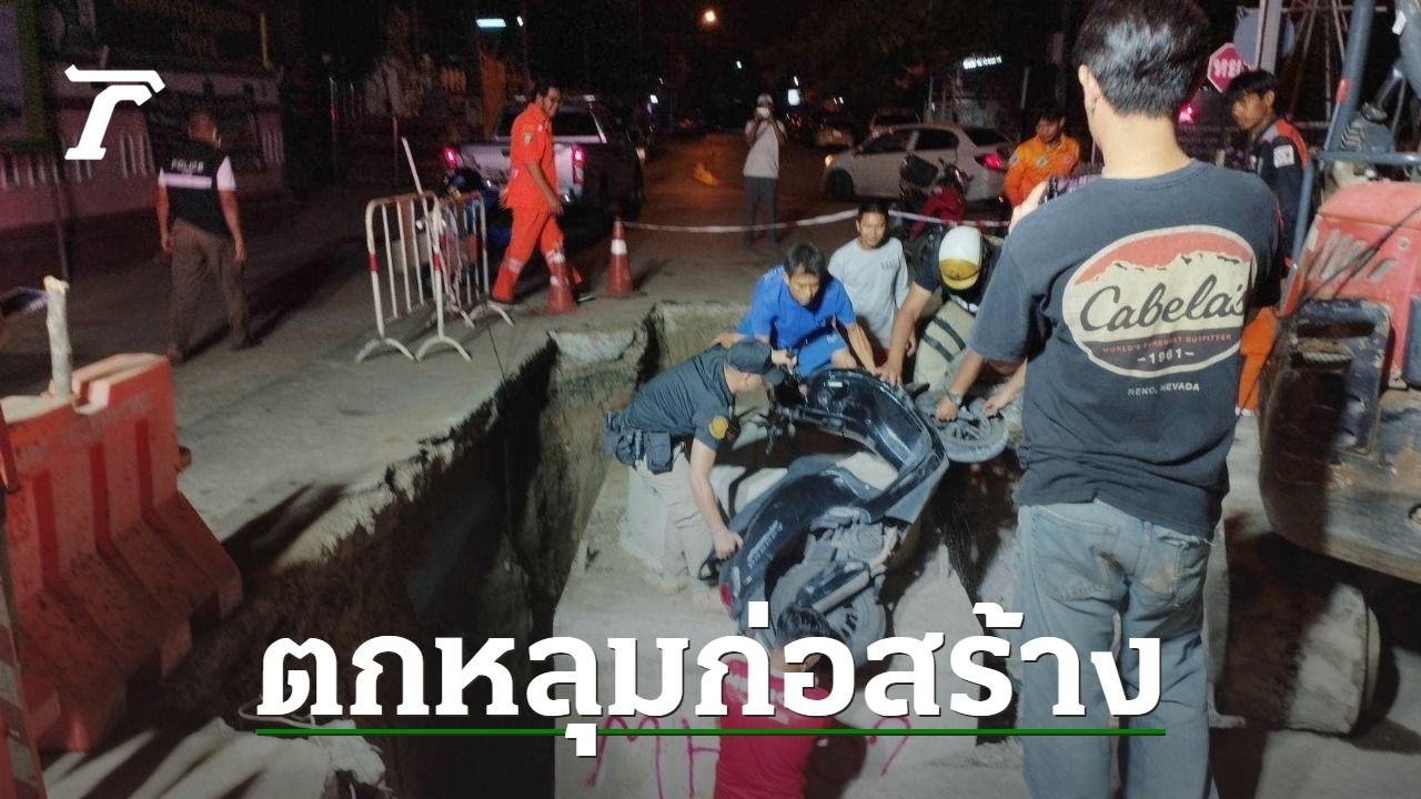 นักศึกษาสาววัย 19 ปี ขี่ จยย.กลับบ้านกลางดึก พุ่งตกหลุมลึก 3 เมตร บนถนนกลางเมืองแม่สอด ซึ่งถูกขุดไว้ระหว่างการก่อสร้างระบบเชื่อมต่อสายเคเบิลใต้ดิน โชคดีแค่บาดเจ็บ วงจรปิดจับภาพได้