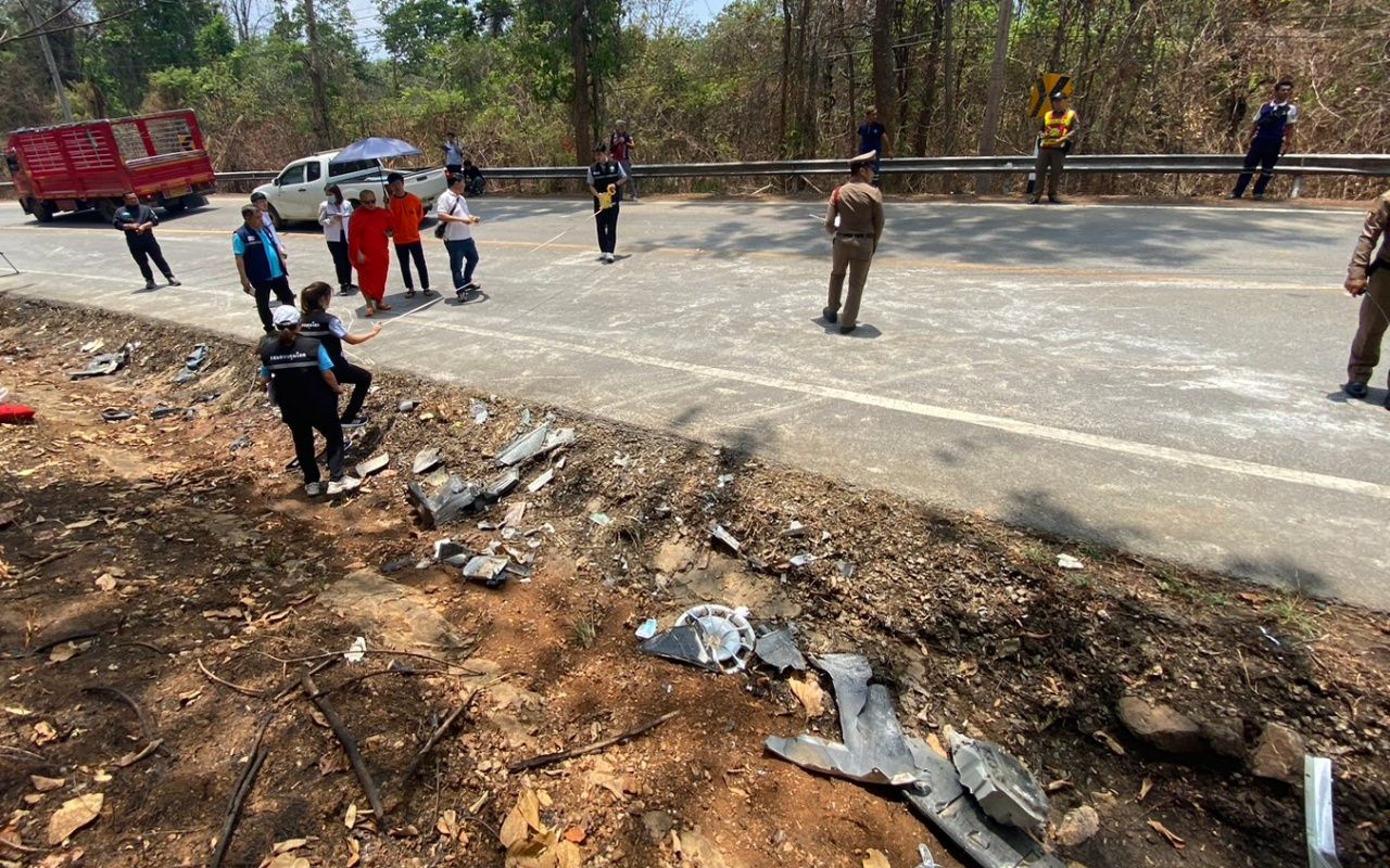 ล่าสุดผู้สื่อข่าวได้ลงพื้นที่เกิดเหตุเป็นบริเวณกิโลเมตรที่ 57 ถนนเชียงใหม่-พร้าว พบว่าบริเวณดังกล่าวเป็นถนน 2 เลน เป็นทางขึ้นลงเขา จากร่องรอยเห็นได้ว่ามีรอยรถยนต์กระบะไถลข้ามเลนมาเลนขวา เป็นรอยครูด มีสิ่งของกระจัดจายเต็มร่องข้างถนน