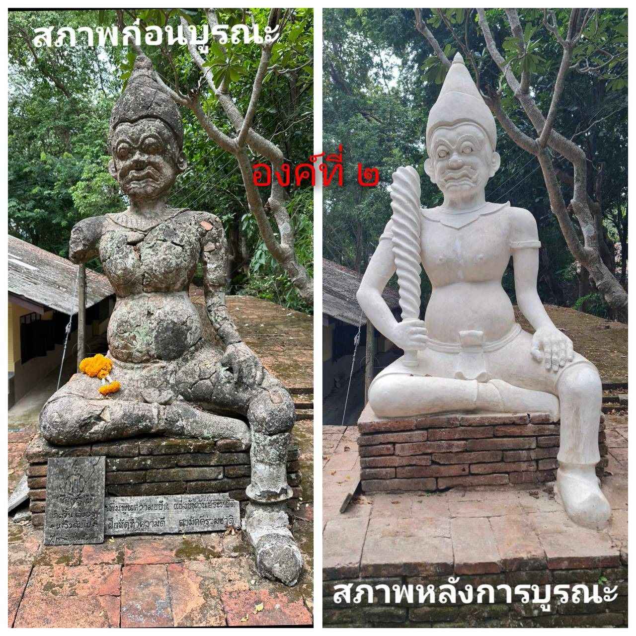 นายเทอดศักดิ์ กล่าวอีกว่า การเลือกบูรณะด้วยการฟื้นคืนสภาพ จะช่วยให้เกิดความมั่นคงแข็งแรงและป้องกันไม่ให้เกิดความเสียหายหนักไปกว่านี้ ส่วนภาพที่ถูกเผยแพร่ในสื่อ ที่เป็นภาพก่อนและหลังบูรณะ อาจทำให้เกิดความเข้าใจผิดได้ โดยพบว่ามีการนำภาพที่องค์ซ้าย ที่ยังไม่ได้บูรณะไปเปรียบเทียบกับองค์ขวา ที่มีการบูรณะเสร็จแล้ว จึงทำให้ดูไม่เหมือนแบบเดิม ทั้งนี้ยืนยันการบูรณะมีการวิเคราะห์อย่างละเอียดรอบคอบแล้ว