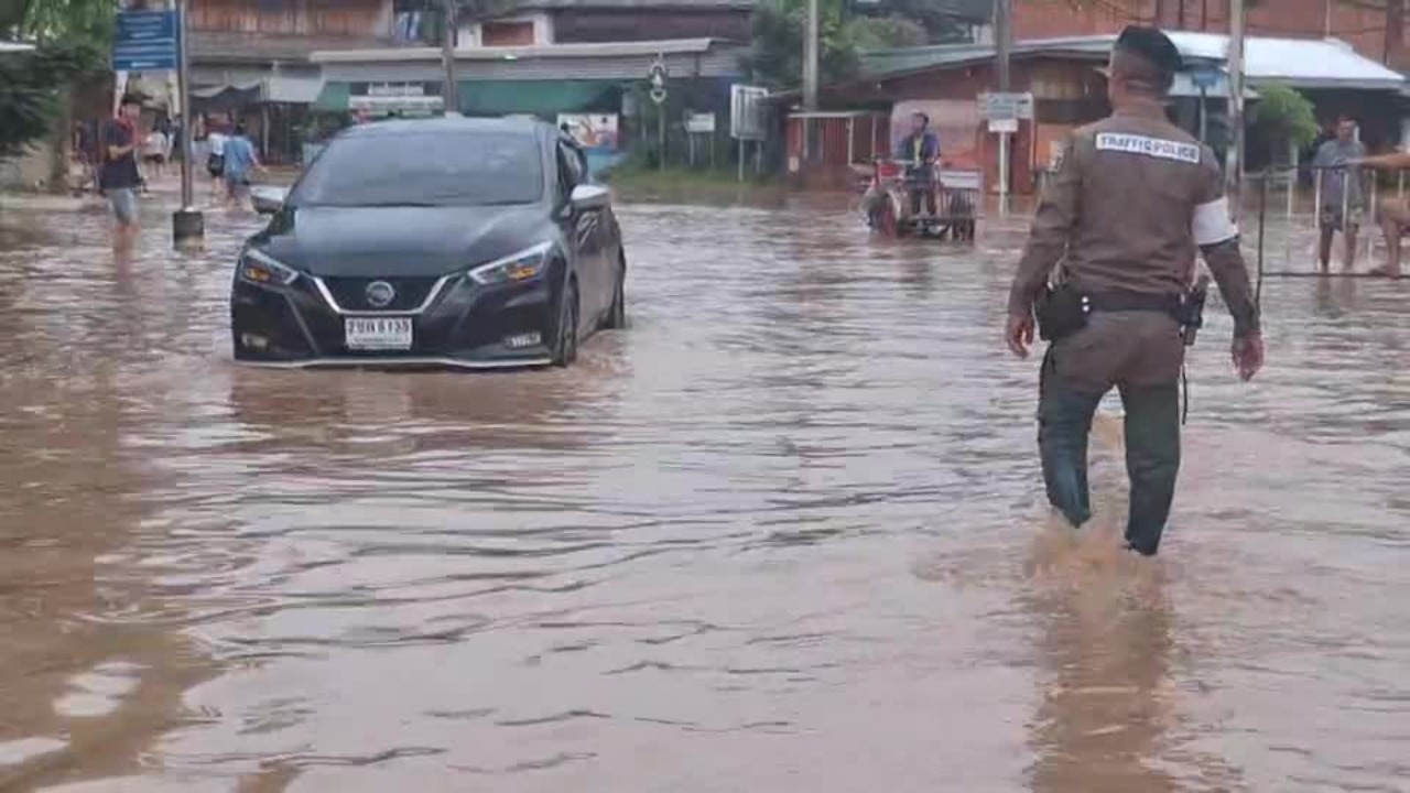 เมืองแพร่จมบาดาล แม่น้ำยมเพิ่มสูงอีก ทะลักเข้าตัวเมือง ถนนทุกสายจมน้ำ รถผ่านไม่ได้ แจ้งเลี่ยงไปใช้ถนนเส้นซุปเปอร์ตรงไปน่าน