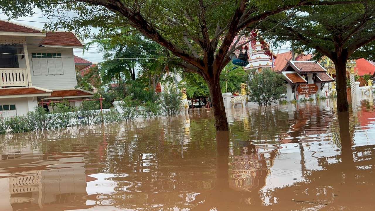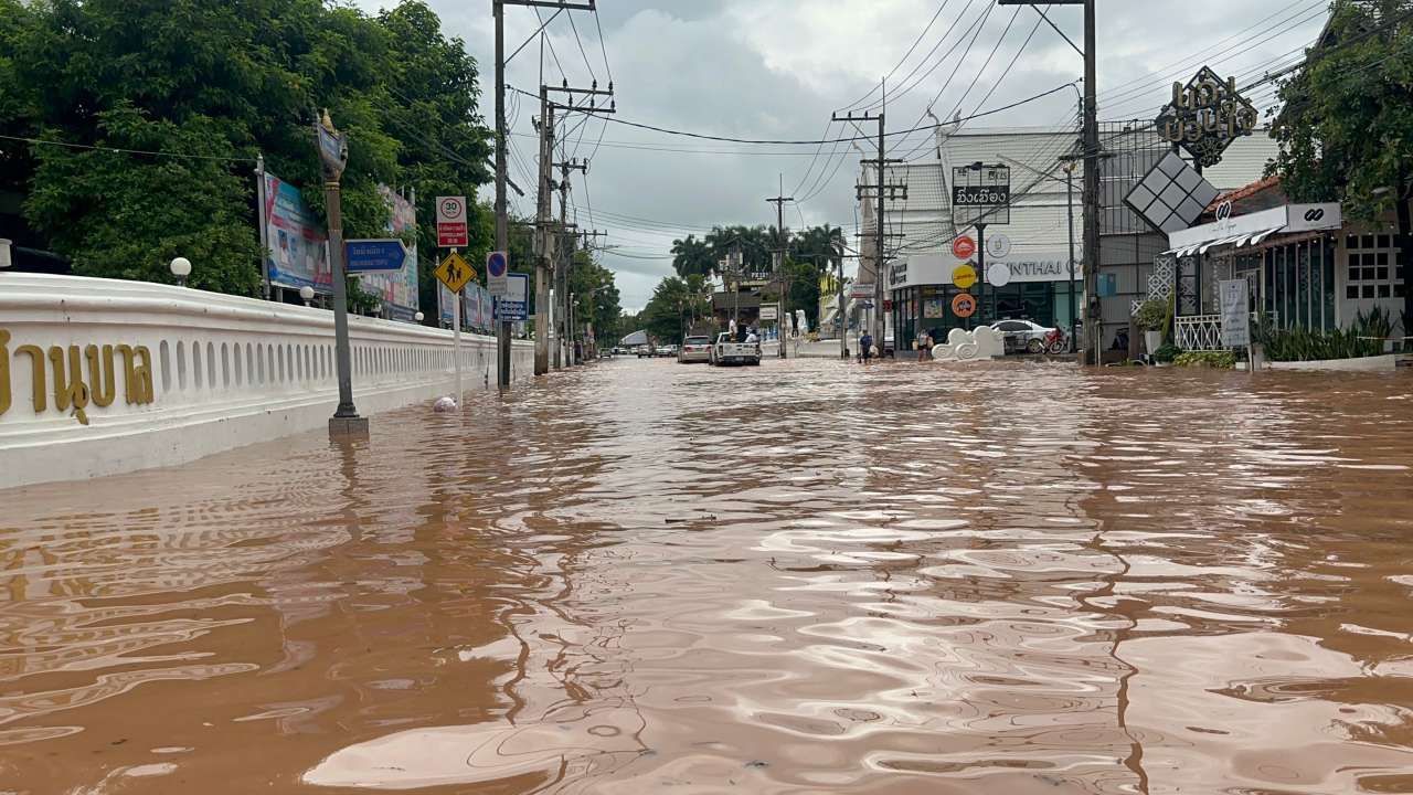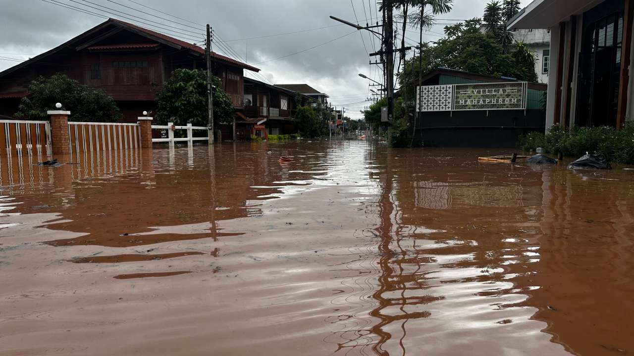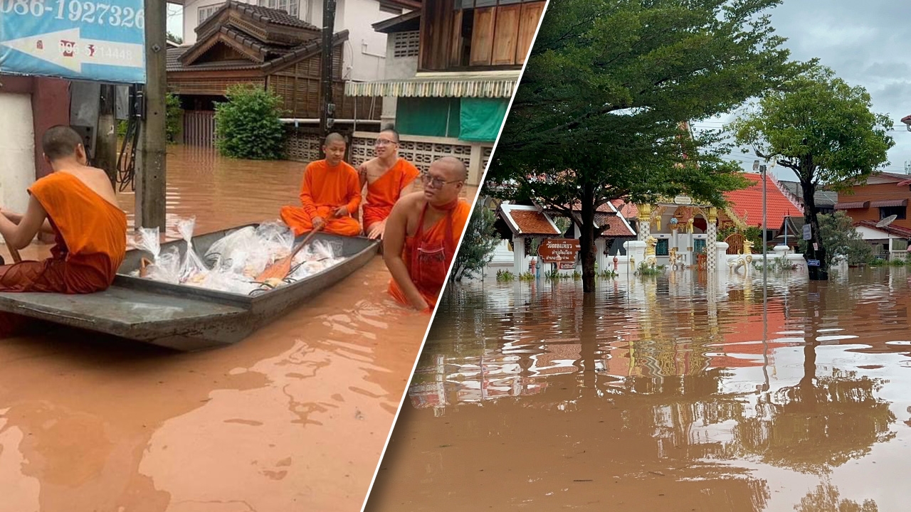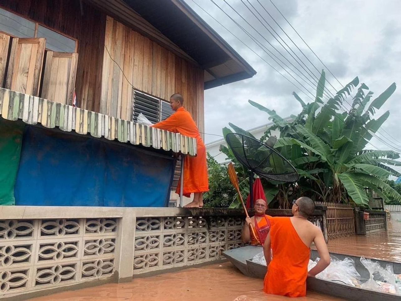 น่านยังท่วมหนัก บางจุดระดับน้ำสูงถึง 2 เมตร ในเขตชุมชน-เขตเศรษฐกิจตัวเมืองต้องใช้เรือสัญจร ทั้งยังมีฝนตกต่อเนื่อง ชาวบ้านไม่อพยพออก รอการช่วยเหลือจากหน่วยงานนำอาหาร น้ำดื่มมาให้ โดยมีพระจากวัดมิ่งเมืองร่วมช่วยเหลือ ปชช.