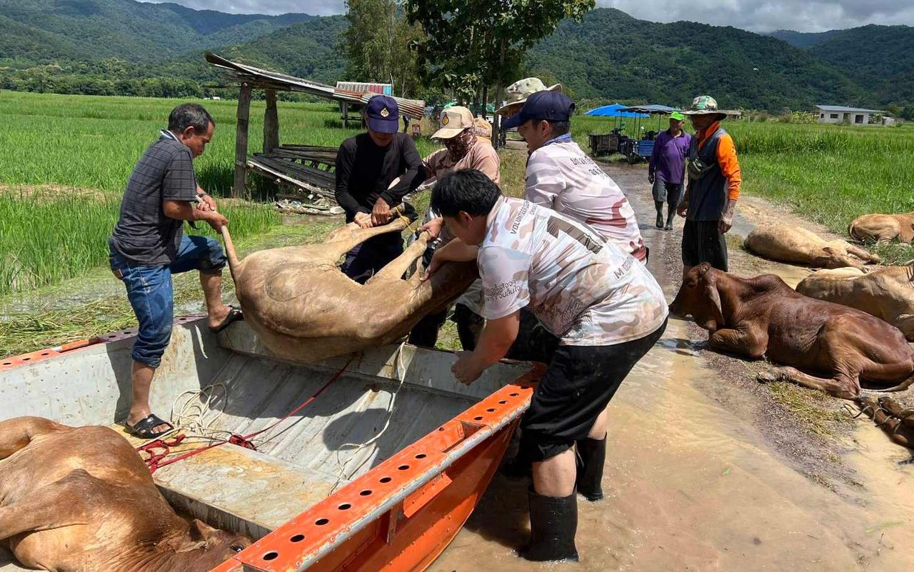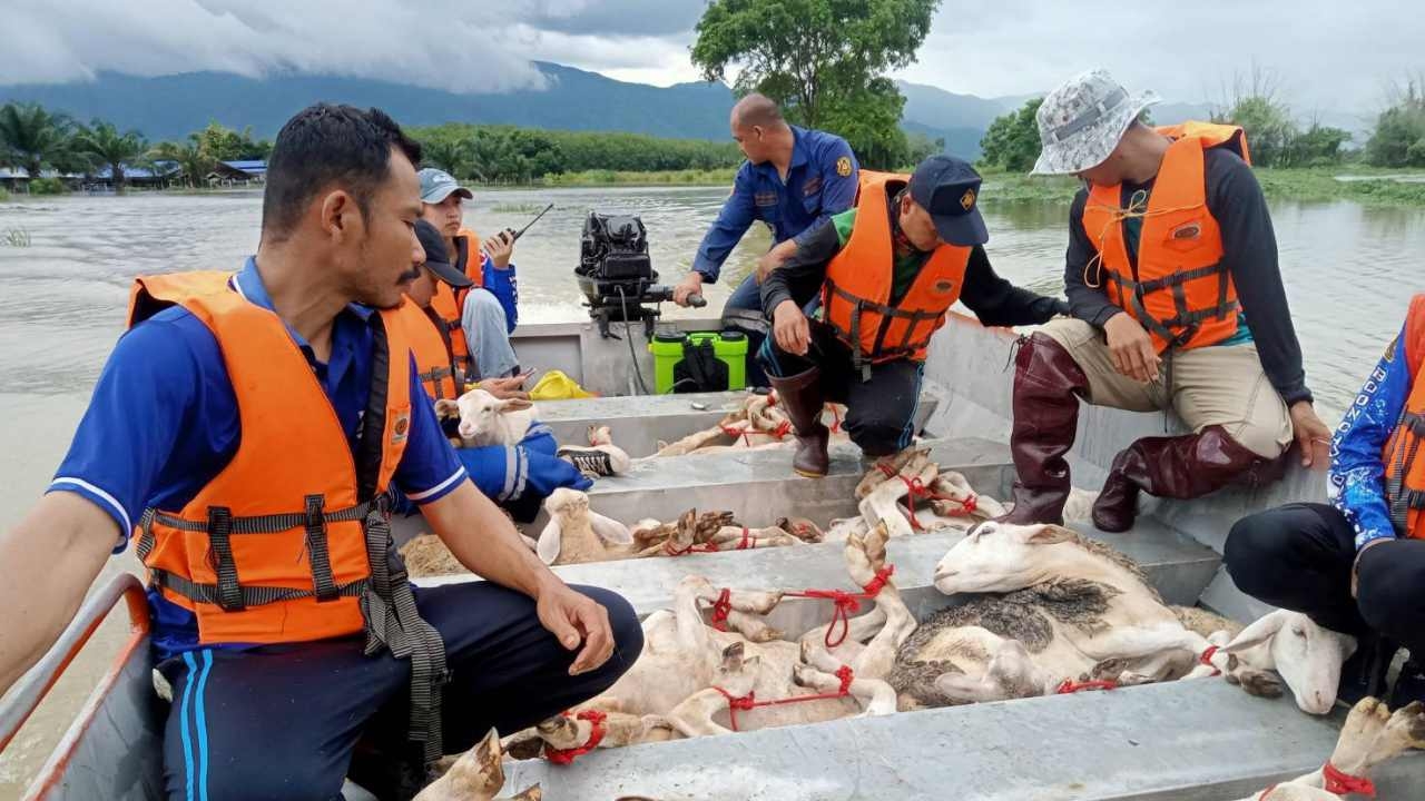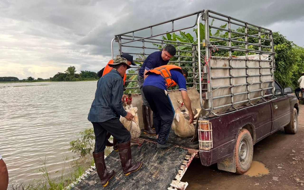 วันที่ 26 ส.ค. 67 ผู้สื่อข่าวรายงานว่า เจ้าหน้าที่ทหาร เจ้าหน้าที่ที่เกี่ยวข้อง และชาวบ้าน ต้องระดมกันใช้เรือเข้าไปขนสัตว์เลี้ยงนานาชนิด โดยเฉพาะโค กระบือ และแพะ ออกจากพื้นที่ที่ถูกน้ำท่วม โดยสัตว์เลี้ยงบางส่วนหนีน้ำไม่ทันถึงกับตายก็มี
