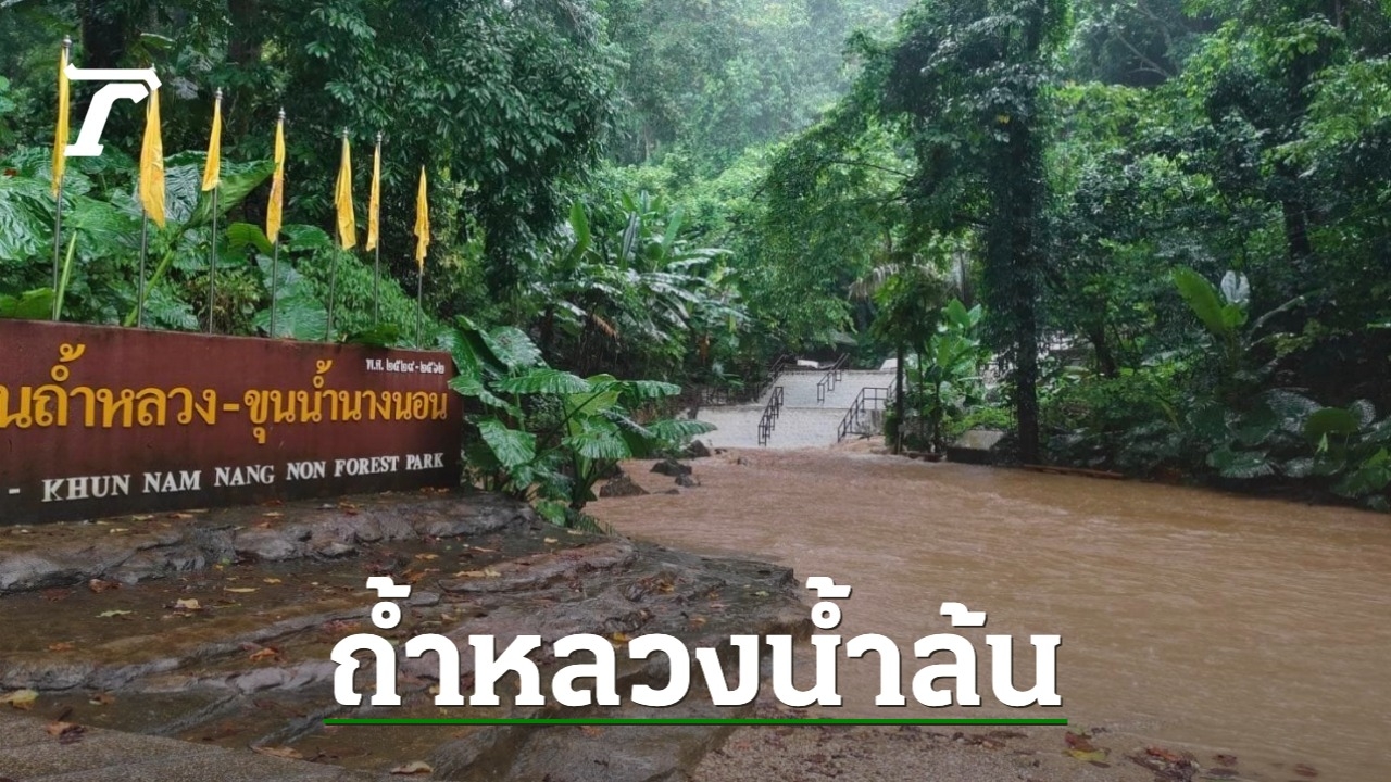 อุทยานแห่งชาติถ้ำหลวงฯ เผยภาพมวลน้ำด้านในถ้ำ ไหลทะลักออกมา เอ่อท่วมไปจนถึงทางเข้าอุทยานฯ พบอยู่ในช่วงปิดการท่องเที่ยวพอดี