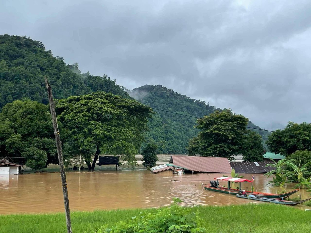 มวลน้ำจากแม่น้ำสาละวิน ที่เมียนมา ไหลบ่าลงมาตอนล่างของไทย ทะลักท่วมหมู่บ้านที่ "สบเมย" บ้านพักริมน้ำจมมิด สั่งปิดโรงเรียนชั่วคราว