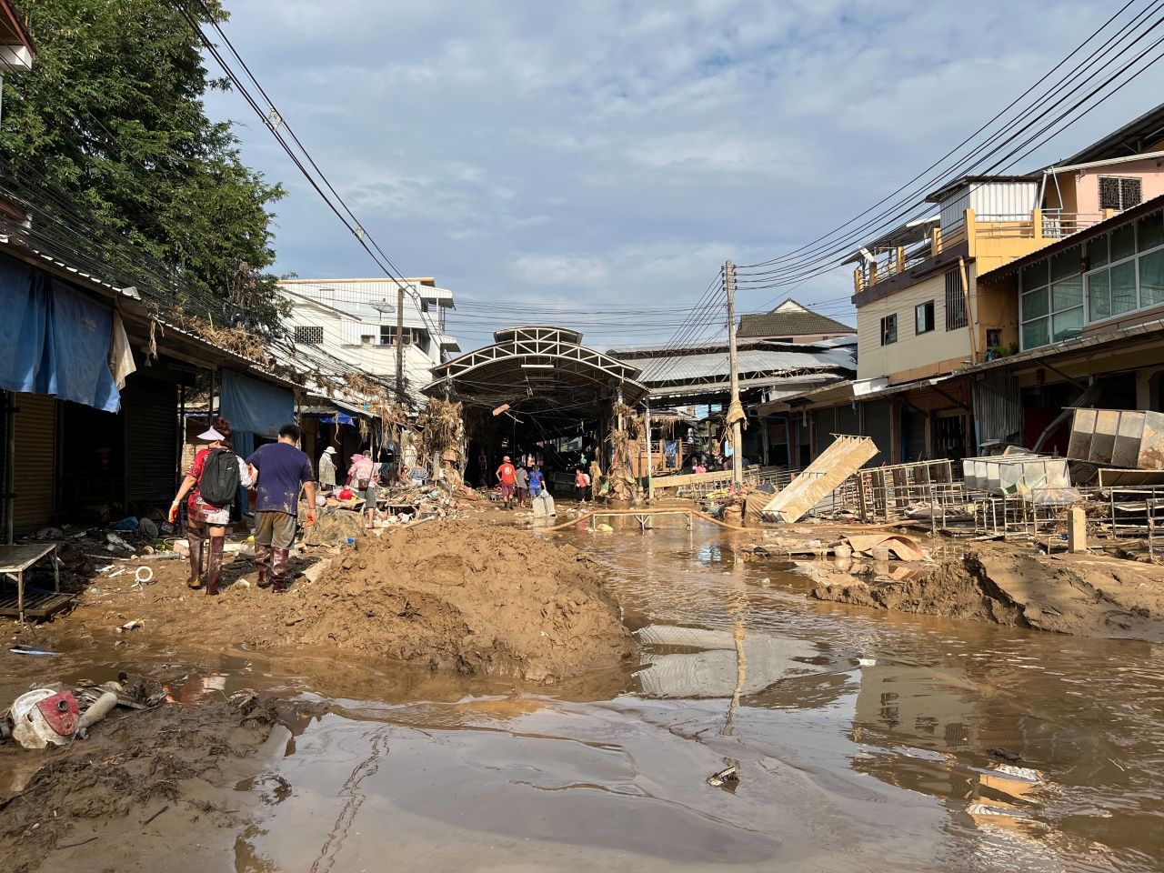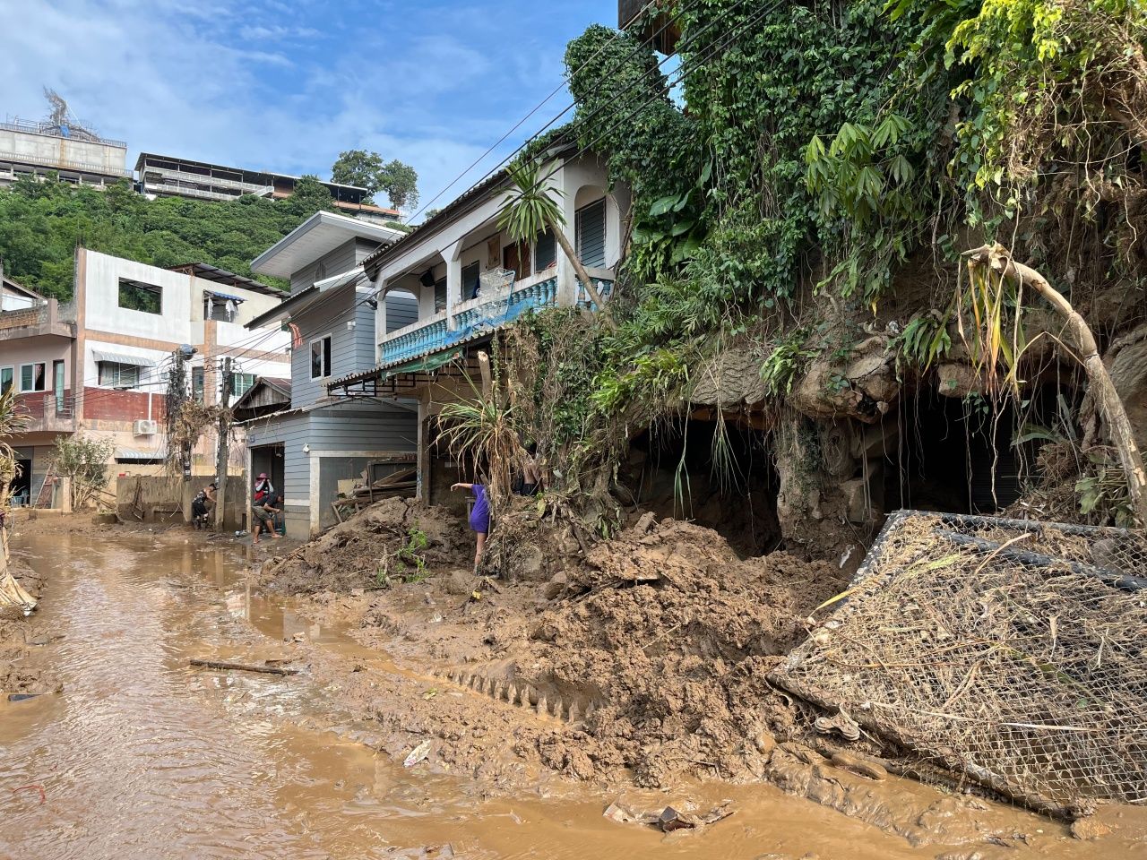 ที่ชุมชนถ้ำผาจม เขตเทศบาลเวียงพางคำ ม.1 ต.เวียงพางคำ อ.แม่สาย จ.เชียงราย ได้มีชาวบ้านกลับเข้ามาทำความสะอาด แต่ก็ยังคงทำได้บางส่วน เพราะดินโคลนทับถมภายในตัวบ้าน บางหลังกระทบถึงโครงสร้าง ไม่สามารถใช้อยู่อาศัยได้อีกต่อไป วันนี้ได้มีเจ้าหน้าที่ของกรมชลประทาน, ฉก.ทัพเจ้าตาก, มูลนิธิเพื่อนพึ่ง (ภา) ยามยาก สภากาชาดไทย และ กฟผ. เข้ามาสำรวจพื้นที่ เพื่อวางแผนทำการบิ๊กคลีนนิ่งเดย์ในวันพรุ่งนี้ (21 ก.ย. 67)