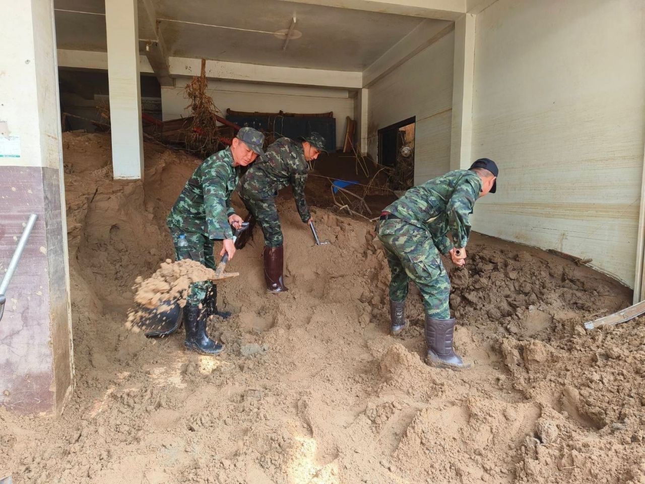เมื่อวันที่ 22 กันยายน 2567 ที่ จ.เชียงราย ผู้สื่อข่าวรายงานสถานการณ์การฟื้นฟูหลังน้ำท่วมใหญ่ในพื้นที่เขตเทศบาล ต.แม่สาย อ.แม่สาย จ.เชียงราย ยังคงเป็นไปด้วยความยากลำบาก โดยเฉพาะชุมชนหัวฝาย ซึ่งเป็นจุดแรกของประเทศไทยที่รับน้ำจากลำน้ำสายและเป็นที่ตั้งของจุดผ่อนปรนหัวฝายและป้อมยาม สภ.แม่สาย มีประชากรอาศัยอยู่ไม่น้อยกว่า 200 ครัวเรือน โดยพบว่าหลังน้ำแห้งได้กว่า 1 สัปดาห์ ยังคงมีดินโคลนที่เริ่มแข็ง เศษไม้และวัชพืชติดอยู่ทั่วอาคาร โดยหลายหลังดินอยู่สูงกว่าหลังคาบ้าน และบ้านเรือนส่วนใหญ่มีดินอยู่เต็มอาคาร มีบ้านเรือนเสียหายทั้งหลังหลายหลัง อาคารจุดผ่อนปรนถูกดินทับครึ่งอาคาร ป้อมยามตำรวจพังทั้งหลัง เหลือแต่ป้ายตั้งอยู่