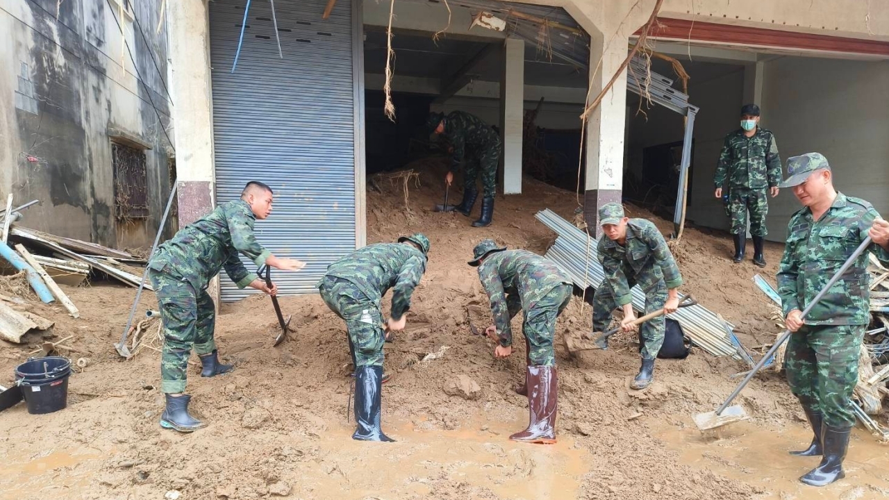 ขณะที่รถจักรยานยนต์หลายคันจมอยู่ในดินโดยยังไม่สามารถเอาออกมาได้ ทั้งนี้ทีมตอบโต้ภัยพิบัติ เพื่อนพึ่ง (ภาฯ) กองทัพบก และภาคเอกชน ได้ระดมเครื่องจักรทั้งรถแบคโฮ แทรคเตอร์ รถบรรทุก ฯลฯ เข้าไปขุดตักดินออกตลอดทั้งวัน รวมทั้งจัดกำลังทหารเข้าไปช่วยชาวบ้านนำดินโคลนออกติดต่อกันมาหลายวันแล้ว